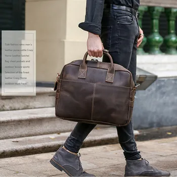 Hign-concerned Chemical: None Genuine Leather Type: Cow Leather Size: 17 Inches Interior: Interior Slot Pocket,Cell Phone Pocket,Interior Zipper Pocket,Interior Compartment,Computer Interlayer Handle/Strap Type: soft handle Exterior: Solid Bag Item Height: 30.5cm Material Composition: crazy horse leather Item Width: 15cm Item Weight: 1.8kg Item Length: 43cm Model Number: GWB3400 Number of Handles/Straps: Single Lining Material: POLYESTER Style: Business Gender: MEN Pattern Type: Solid Closure Type: zipper Main Material: Genuine leather Brand Name: Luufan Origin: Mainland China CN: Guangdong…