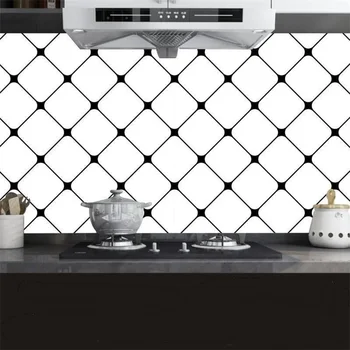 • 40cm Grid Oil-proof Sticker Kitchen Fireproof High Temperature Resistant Wall Sticker Self-adhesive Countertop Cabinet Wallpaper