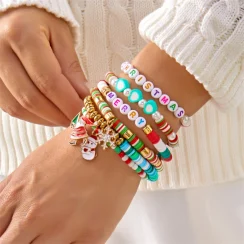 Multi-Layer Christmas Bracelet Crutch Candy Santa Claus Deer Snowflake Snowman...