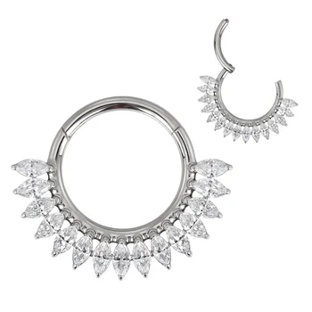 G23 Titanium Nose Rings PIERC Fan-shaped and Side Zircon Ring...