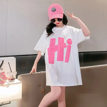 Fit: True to Size Model Number: Girls Tshirt Collar: O-Neck Clothing Length: long(26+inch) Pattern Type: Letter Sleeve Length(cm): Short(4 – 16 Inch) Material: Cotton Style: Fashion Origin: Mainland China CN: Guangdong Item Type: tops Age Range: 4-6y,7-12Y,12+y Department Name: Children Season: Summer Tops Type: TEES Gender: Girls