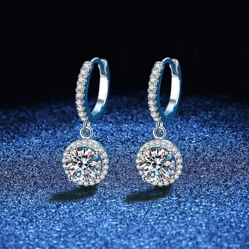 Hign-concerned Chemical: None Certificate: Yes is_customized: Yes Side Stone: Other Artificial material Metal Stamp: 925,Sterling Occasion: Wedding Gender: Women Model Number: 23-5-E1 Shapepattern: Round Style: TRENDY Certificate Type: Third Party Appraisal Metals Type: Silver Main Stone: Moissanite Item Weight: 4g Origin: Mainland China Earring Type: drop earrings Fine or Fashion: Fine Product Details Material : 925 Sterling Silver Main Stone : 1CT Moissanite 1 carat size: 6.5mm Total carat about the earrings (pair):…