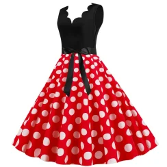 High-concerned chemical: None Craft of Weaving: Tatting Material Composition: synthetic fiber Closure Type: Zipper Profile Type: A Fabric Type: POLYESTER Type: regular Age: Middle Age Place Of Origin: China (mainland) Model Number: WQ1414 Season: Summer Neckline: V-Neck Waistline: empire Sleeve Style: regular Dresses Length: Knee-Length Decoration: Sashes Sleeve Length(cm): Sleeveless Pattern Type: Dot Silhouette: A-LINE Style: Vintage Material: POLYESTER Gender: Women Origin: Mainland China Brand Name: Junxi Wan Elasticity: Medium Strecth CN: Zhejiang Fit Type: Regular Fit Key words 2: vintage dress women…