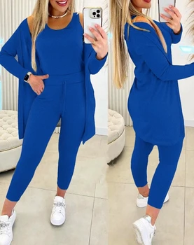 whether full opening: No Hign-concerned Chemical: None Craft of Weaving: Knit Material Composition: synthetic fiber Fit Type: SKINNY Fabric Type: synthetic fiber Season: Autumn/Winter Age: MIDDLE AGE Pattern Type: Solid Collar: O-Neck Decoration: Pockets,Lace-up Closure Type: Pullover Style: Casual Material: POLYESTER Gender: WOMEN Origin: Mainland China Brand Name: CHUJIE Elasticity: Slight Strech CN: Guangdong Elegant Women's 3-Piece Set 2024 Autumn Solid Color Commuter Tank Top Drawstring Pants Set Long Sleeve Casual Coat Sports Set…