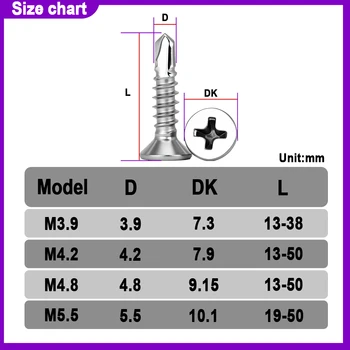 Hign-concerned Chemical: None Dimensions: M3*8 DIY Supplies: Metalworking Drive Style: Phillips is_customized: Yes Model Number: M3.9 M4.2 M4.8 M5.5 Head Style: Flat Screw Type: Drilling Screws Material: Stainless Steel Brand Name: Grey Eteri Origin: Mainland China Certification: None Package Quantity: 50-99Pcs