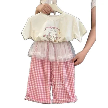 whether full opening: No Thickness: thin Craft of Weaving: TAT Hign-concerned Chemical: None Fit: Fits true to size, take your normal size Closure Type: Pullover Outerwear Type: coat Model Number: New Girls Plaid Sets Sleeve Style: regular Collar: O-Neck Pattern Type: Geometric Sleeve Length(cm): short(4-16inch) Material: COTTON,POLYESTER Style: fashion Brand Name: XJYIYUANLC Age Range: 4-6Y Origin: Mainland China CN: Guangdong Season: Summer Gender: girls Item Type: sets Department Name: Children Color: Pink Age: 2-8 Years old Size: 90-100-110-120-130-140 Season: Summer Girls…