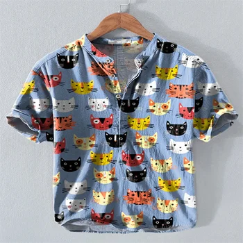 whether full opening: No Hign-concerned Chemical: None Craft of Weaving: Non-Woven Applicable Season: Summer Applicable Scene: Beach Place Of Origin: China (mainland) Closure Type: Pullover Pattern Type: Print Sleeve Style: Regular Style: Casual Collar: V-Neck Sleeve Length(cm): short(4-16inch) Material: Bamboo Fiber,Linen Shirts Type: Casual Shirts Origin: Mainland China CN: Shanghai Gender: Men Item Type: SHIRTS