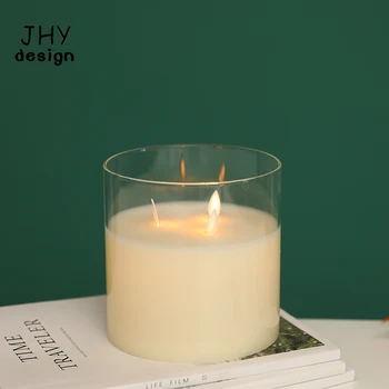 Use: Home Decoration Model Number: JHY6331-S Product: Candle Lamp Feature: Flameless Material: Paraffin Wax Type: LED Candle Origin: Mainland China 3-Wick Glass Realistic Flameless Candle-6”x8” Real Wax Dancing LED Flames Battery Powered Candle Flameless paraffin candle 3-Wick Extra Large LED Candle lights Material:Paraffin and LED light Size:6inch(diameter)x8inch(high) Color:clear glass + Dancing flame +Real wax Timing Feature:6-Hours Power : 2xAA battery powered LED…
