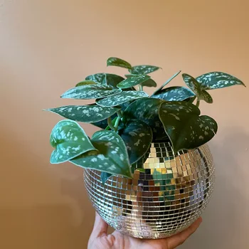 Origin: Mainland China Product Details: Including a disco ball vase + hanging rope Diameter: 6inch Hight: 4.72inch This planter can be hung or set flat on a surface, allowing you to place anywhere the light catches in your home!