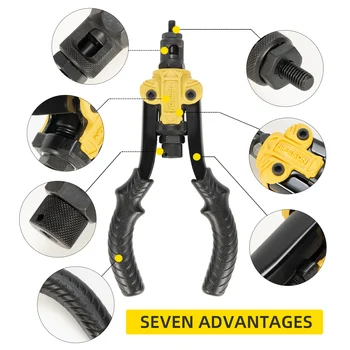 Hign-concerned Chemical: None Riveter Gun Type: Rivet Nut Guns Power Type: Hand Riveters Brand Name: FENNEC Origin: Mainland China Certification: CE Manual Rivet Nut Gun Gun head accessories: M3 M4 M5 M6 M8 Length: 300mm Maximum working stroke: 9mm Maximum working effective stroke: 7mm Max Arm Multiplier: 25 Feature: ①Railway heat treatment, thickened steel plate handle. ②Easy to carry, long life…