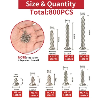 Hign-concerned Chemical: None Dimensions: M2*3 DIY Supplies: Woodworking is_customized: Yes Drive Style: Phillips Model Number: 750 Head Style: Round Screw Type: Self-tapping Screws Material: Carbon Steel Brand Name: AuroraCharm Origin: Mainland China Package Quantity: 500-799Pcs 50pcs of each Sizes:M1.7*5,M1.7*6,M1.7*8,M2*4,M2*5,M2*6,M2.3*5,M2.3*8,M2.3*10,M2.6*6,M2.6*8,M2.6*10,M3*4,M3*5,M3*6 Standard Cross Recessed, uniform force, easy to lock, not easy to slip, more convenient and quick to use.The thread is deep and clear without burr, high quality carbon…