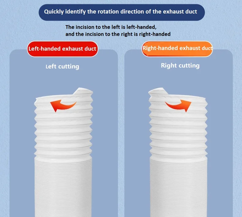 4. Universal Compatibility – The exhaust pipe is suitable for all types of portable air conditioner models. As long as the same hose is used, the fitting is 130mm/150mm/180mm in diameter (outer edge) and its threads are counter-clockwise(left). If you need the clockwise type(right), please contact us before you place an order to Customization required.