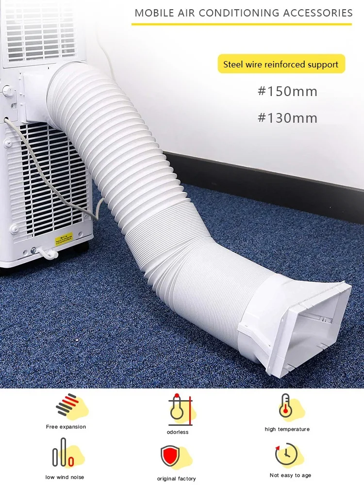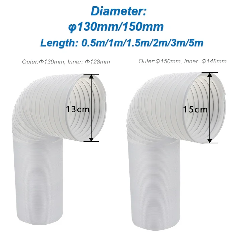 ∅130mm/150mm/180mm Mobile Air Conditioning Exhaust Duct PP Flexible Vent Pipe Turning To Left Extend Connect Tube,0.5m-5m