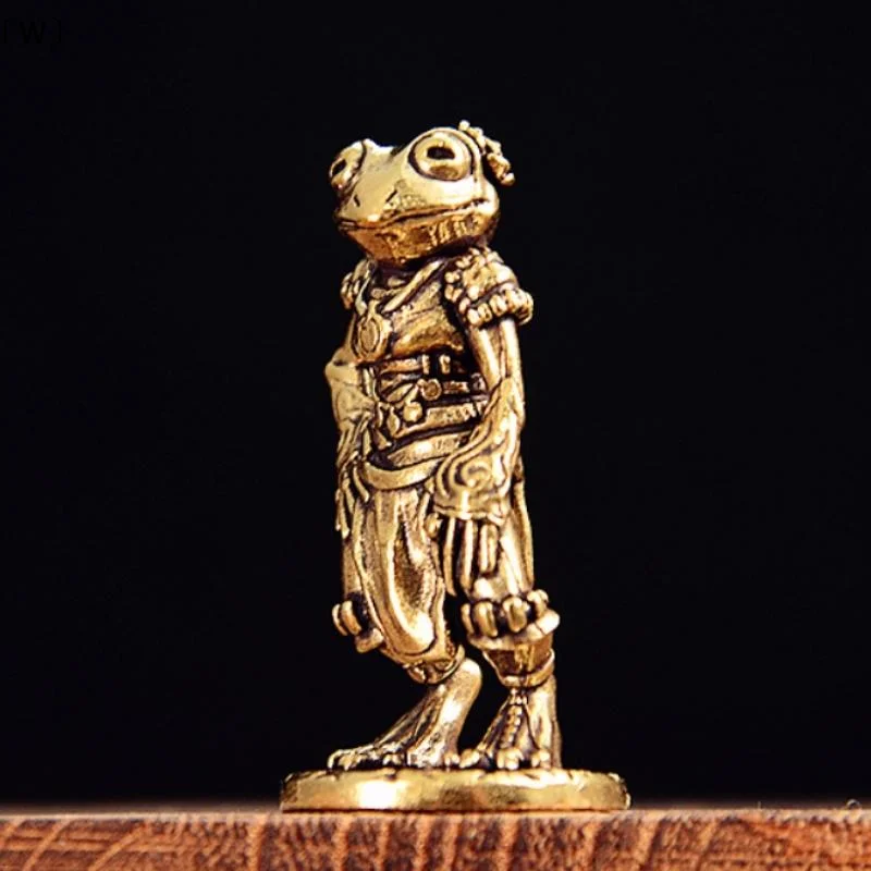 Graceful Frog Statue Ornaments Mini Antique Brass Frog Animal Sculpture Home Desk Decoration Tea Pet Collection Exquisite