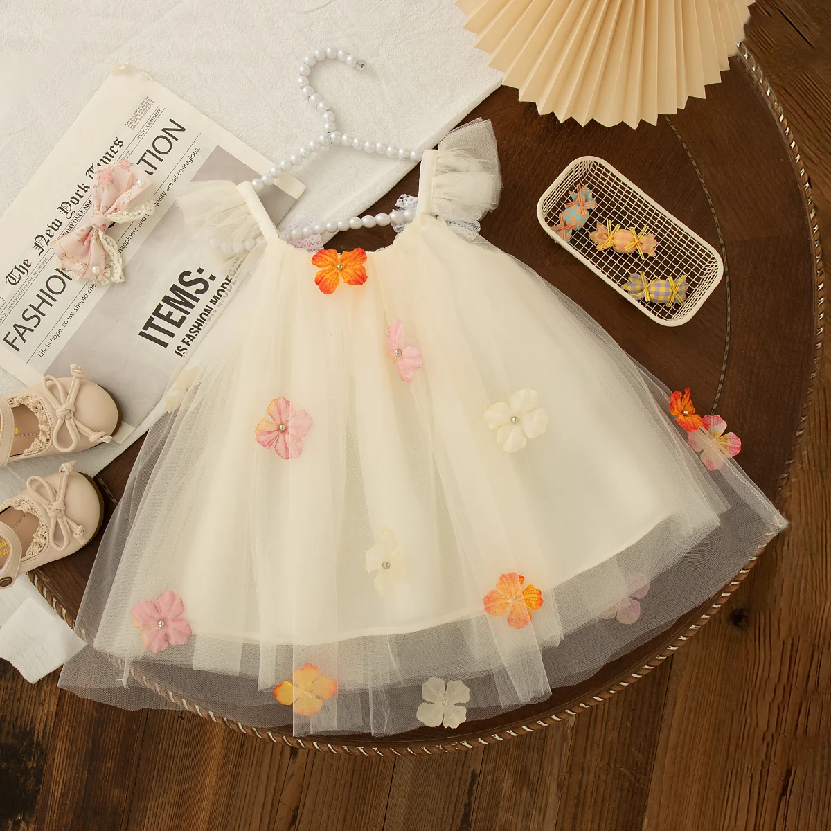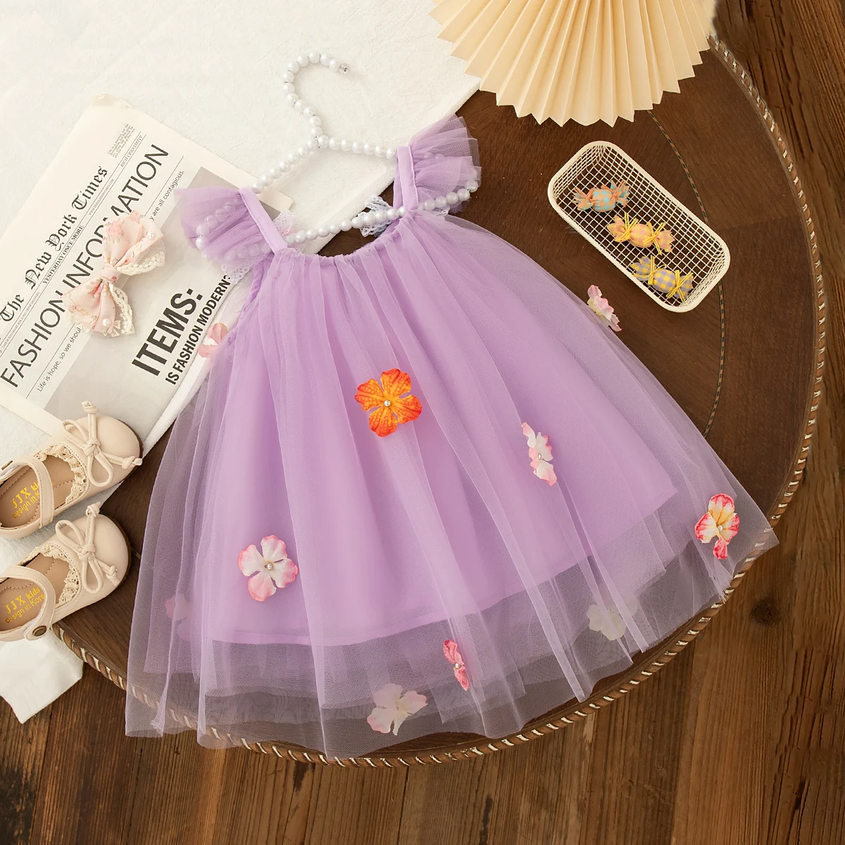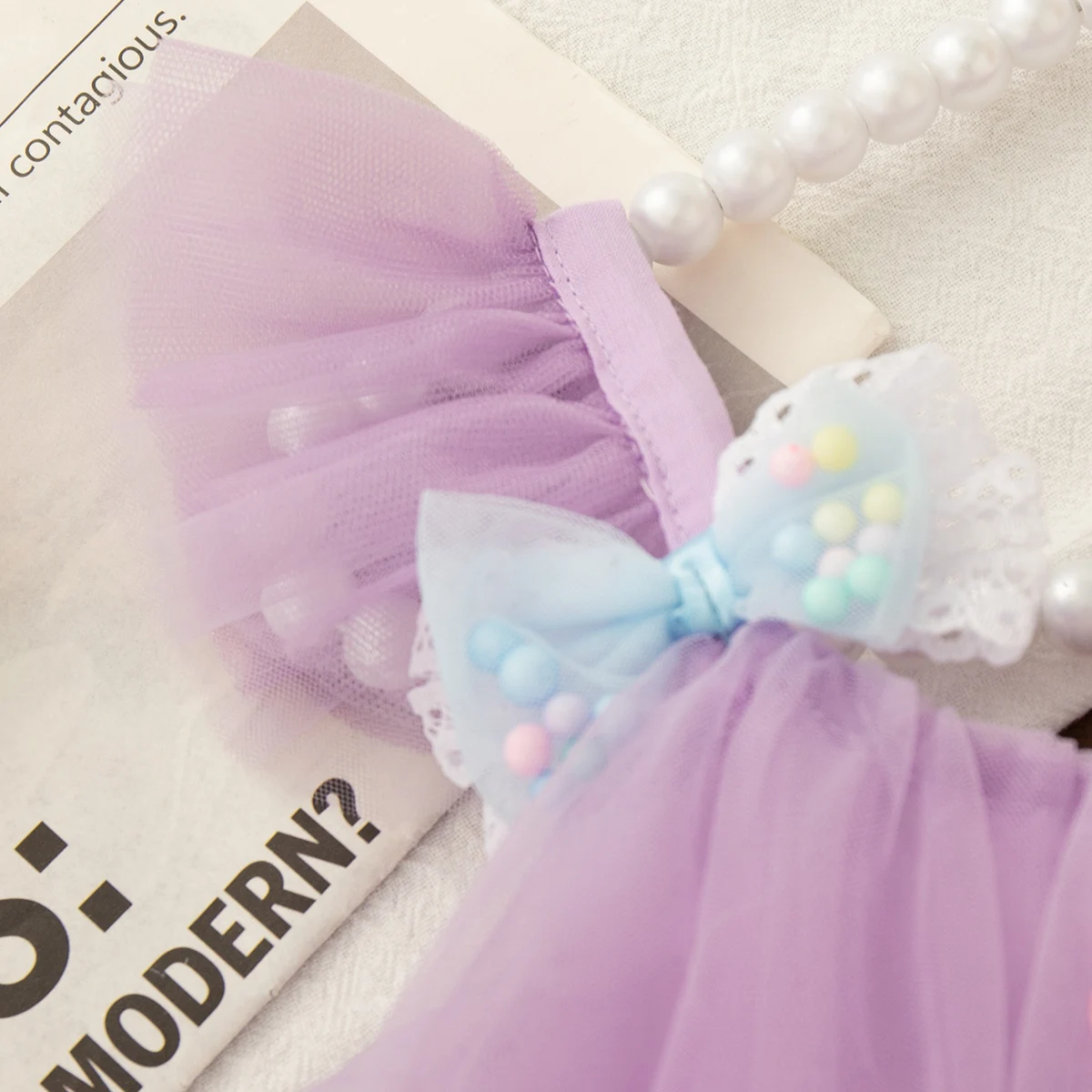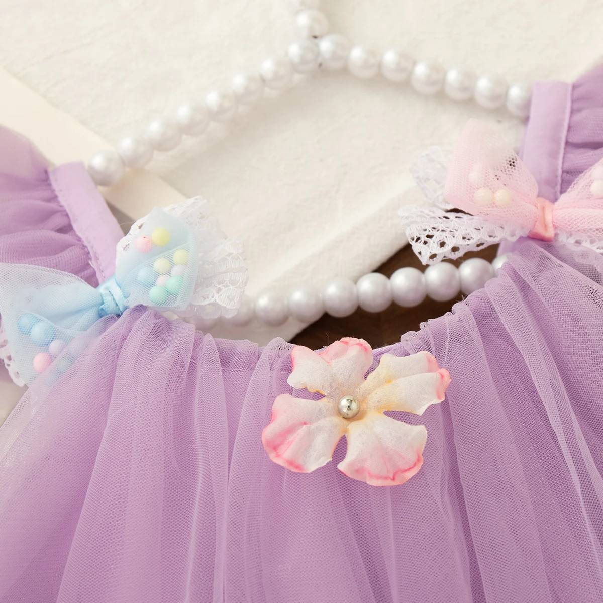 0-2 Years Baby Girl Dress Korean Style Flower Bow Purple Suspender Princess Dress Summer Beach Party Dress for Kids Girl
