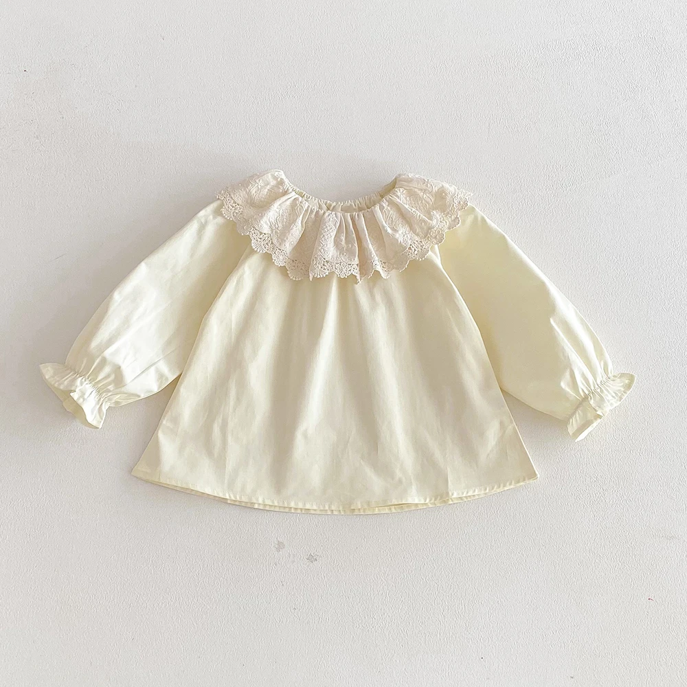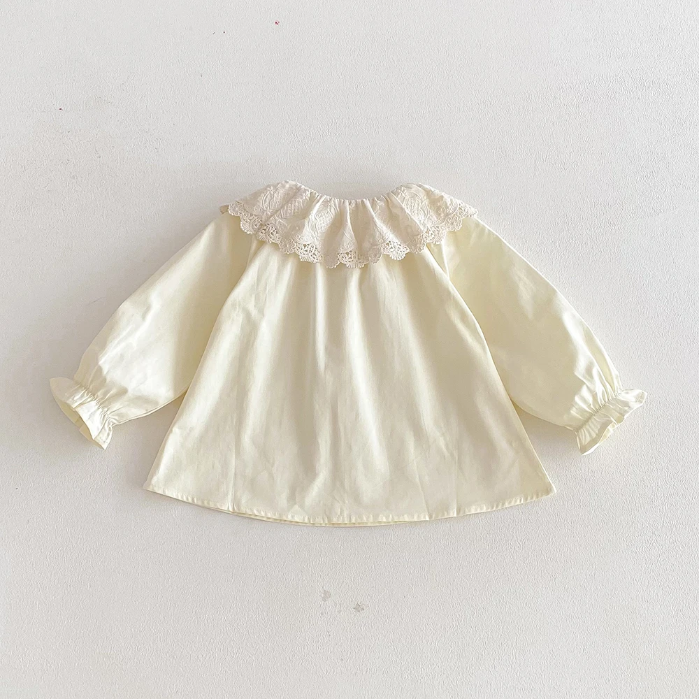 0-24m Baby Girls Ruffles Shirt Spring Cotton Long Sleeve Lace Blouse Infant Newborn Tops Children Shirts Toddler Girls Clothing