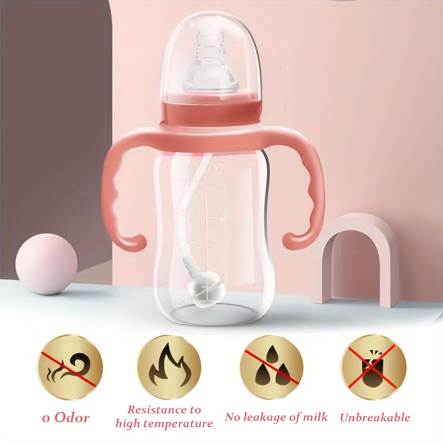Crafted from safe and reliable food-grade PP material, this bottle is lightweight and shatterproof. The included removable handles make it easy for babies to grip and learn to hold their own bottle, making it an ideal partner for transitioning from breast to bottle and then to self-feeding.