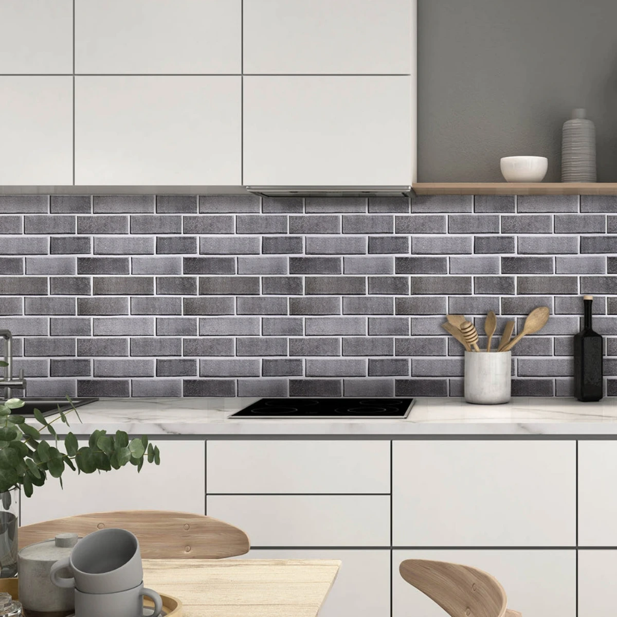 Brick usage in home decor usually shows the host’s rich historical accumulation and elegant personal taste. This brown – gray brick peel and stick wall tile work quite well. Featuring a 3D real brick pattern with high-quality adhesive backing, it can simply stick to any smooth, flat surface to install, easily change your space into a new style. It is great for a gray brick accent wall, a gray brick background living room, a gray brick backsplash kitchen, easy and affordable!