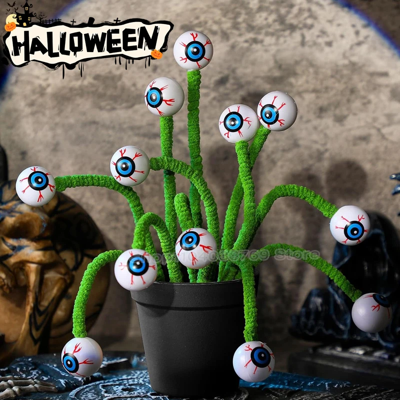 Product features:get set for Halloween with this pack of 6 black and white fake eyeball branches, you can bend it into the shape you want, insert it into your flower pot, suitable for creating your own frightening piranha and home decoration