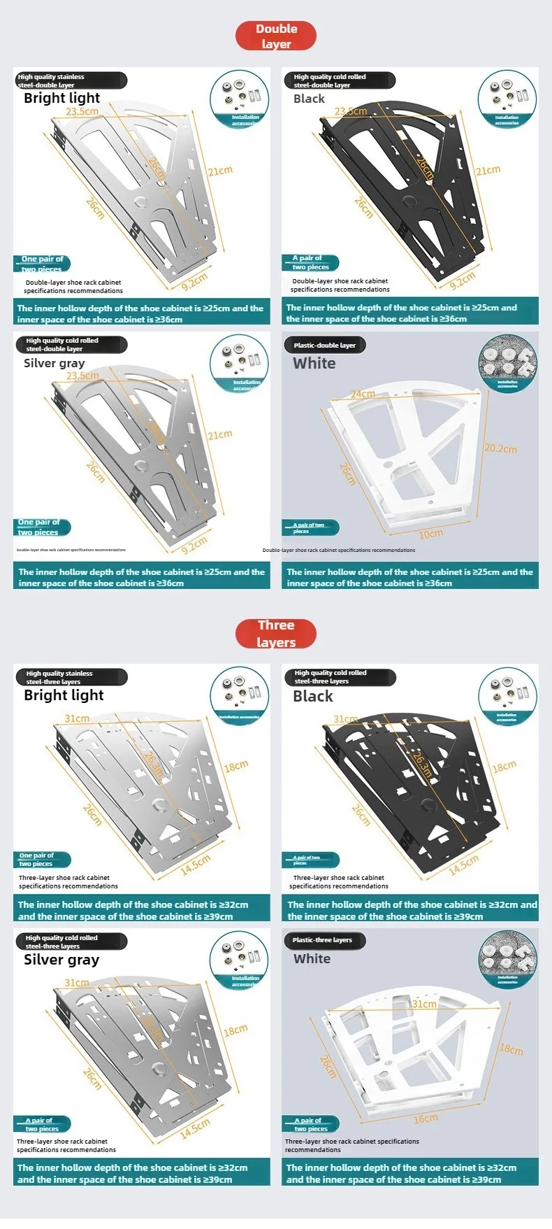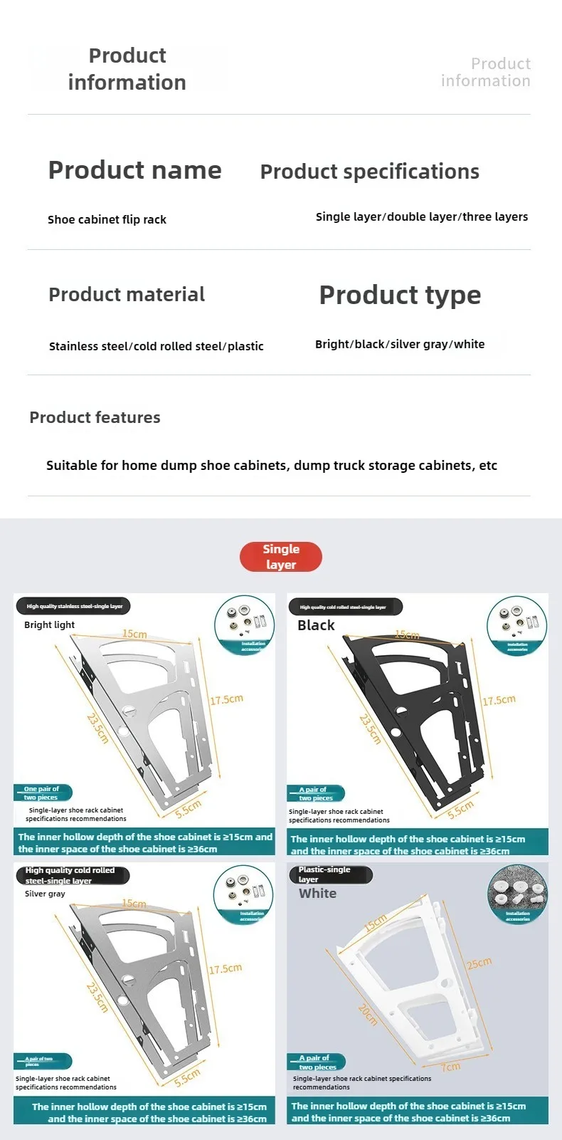 1/2/3 Layer Shoes Cabinet Hinge Cold Rolled Steel Furniture Fittings Drawer Turning Rack Black Shoes Rack Flip Hinge Multicolor