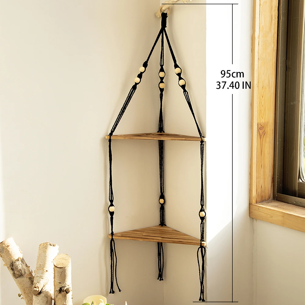 The handmade macrame wood hanging shelf is linked by macrame cord woven by local craftsmen carefully, wall hanging shelf is made with natural materials to give people a minimalist feeling and create a relaxing ambience indoors.which matches any rustic, boho, modern, or minimalist home decor.
