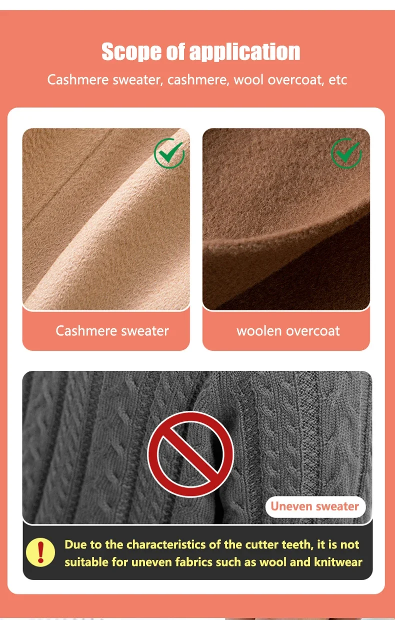 1. Easy to use: Quickly shave and refresh old fabrics. Will not damage the fabric, remove pilling and fluff from sweaters, curtains, carpets, upholstery, etc.