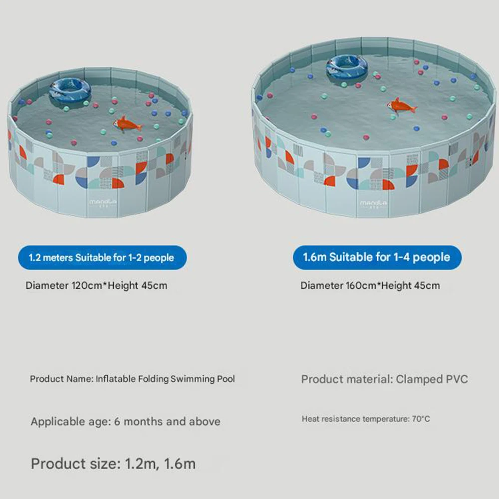 1.2m 1.6m Round Swimming Pool PVC Foldable Non-Inflatable For Family Home Outdoor Garden Backyard Summer Water Sports Party Pool
