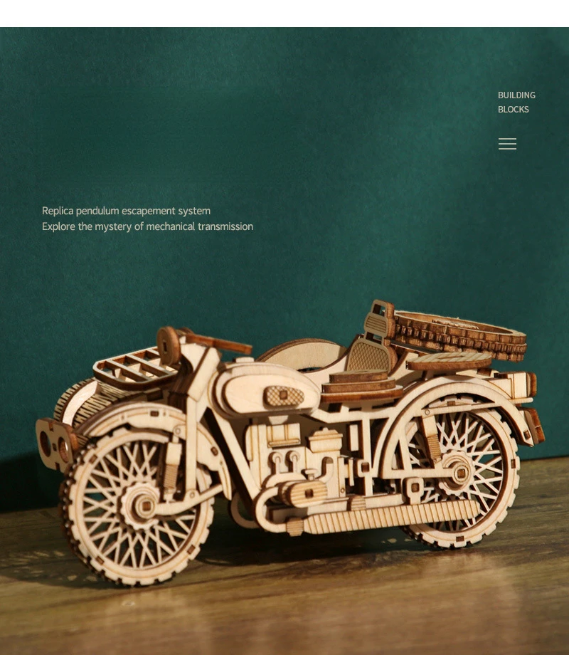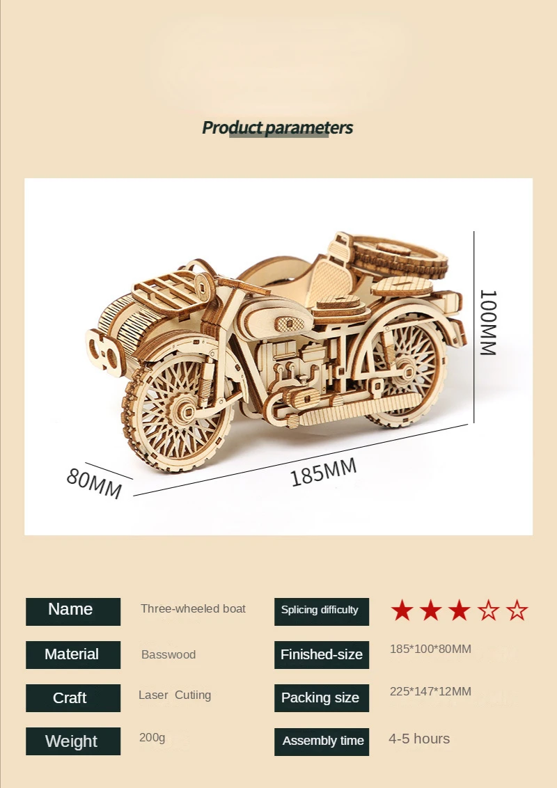 Tricycle Motorbike Puzzle Toys DIY Assembly Building Blocks Kits 3D Wooden Laser Cutting Mechanical Model Gift For Child Adults