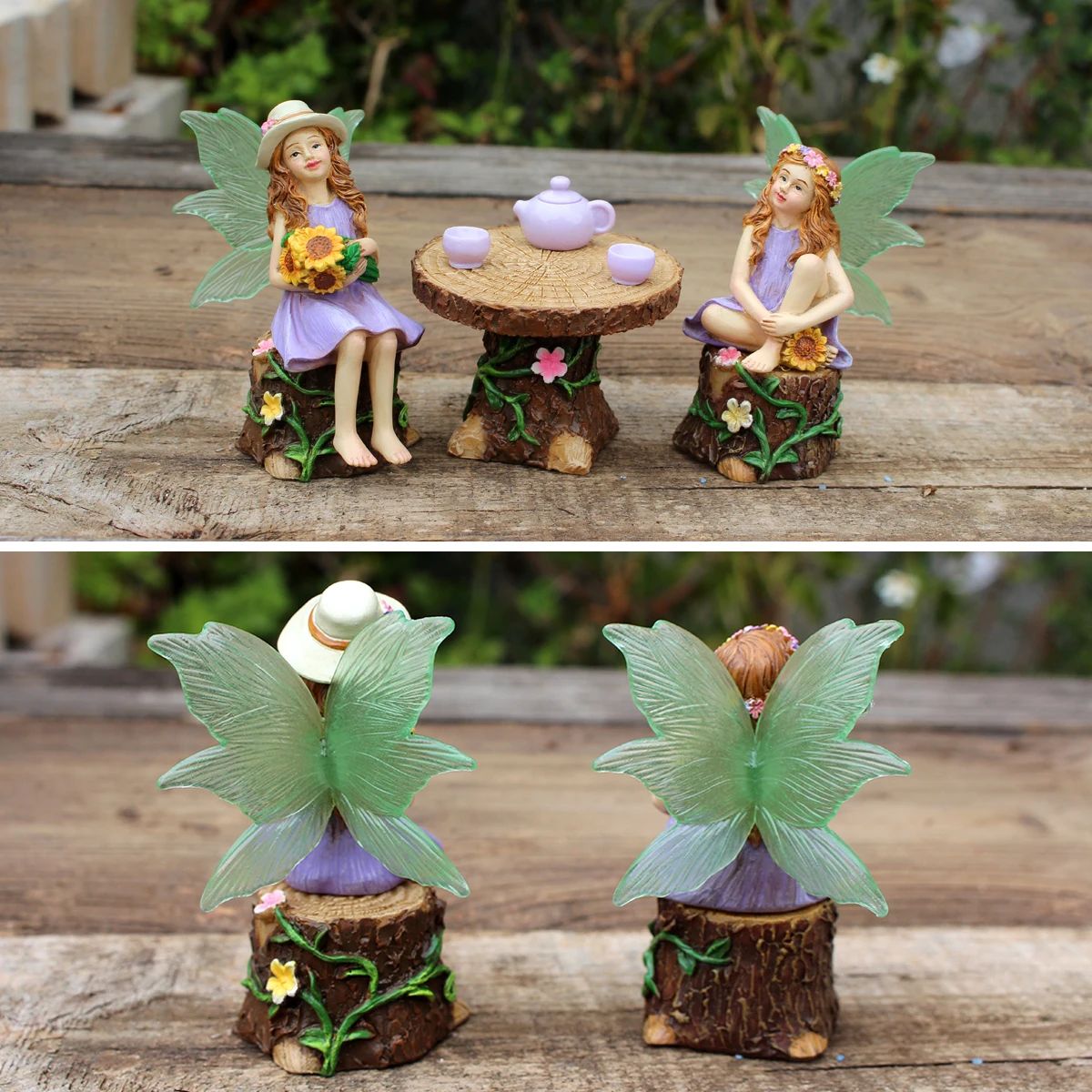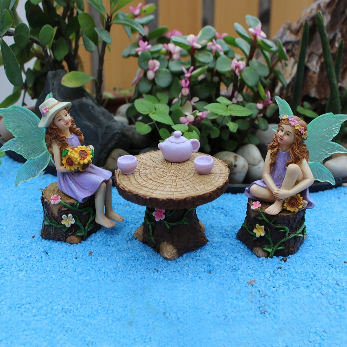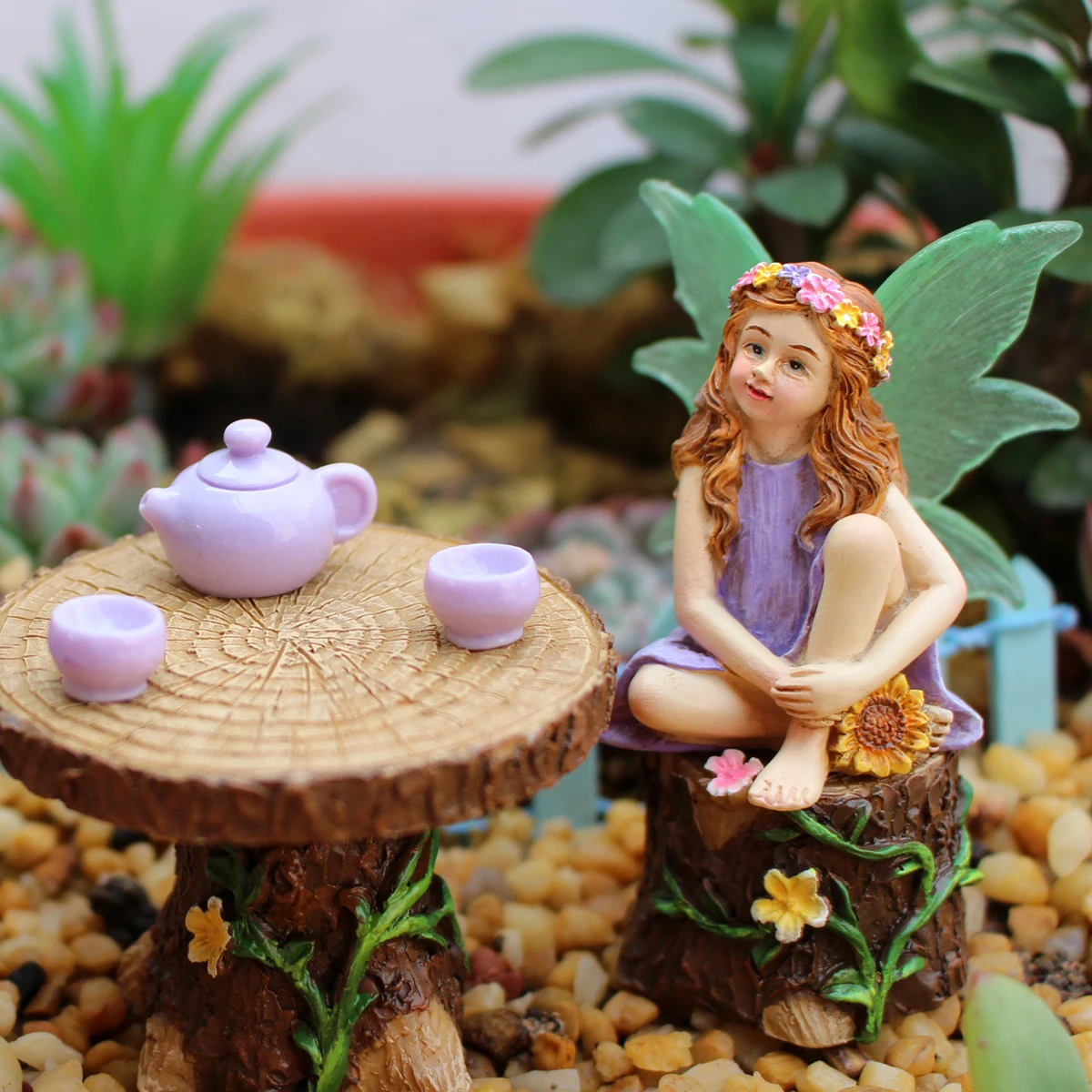 1 Set Summer Tea Party Vacation Flower Fairy, Interesting Scene Simulation Micro Landscape Decoration Statue, Outdoor Fairy Gard