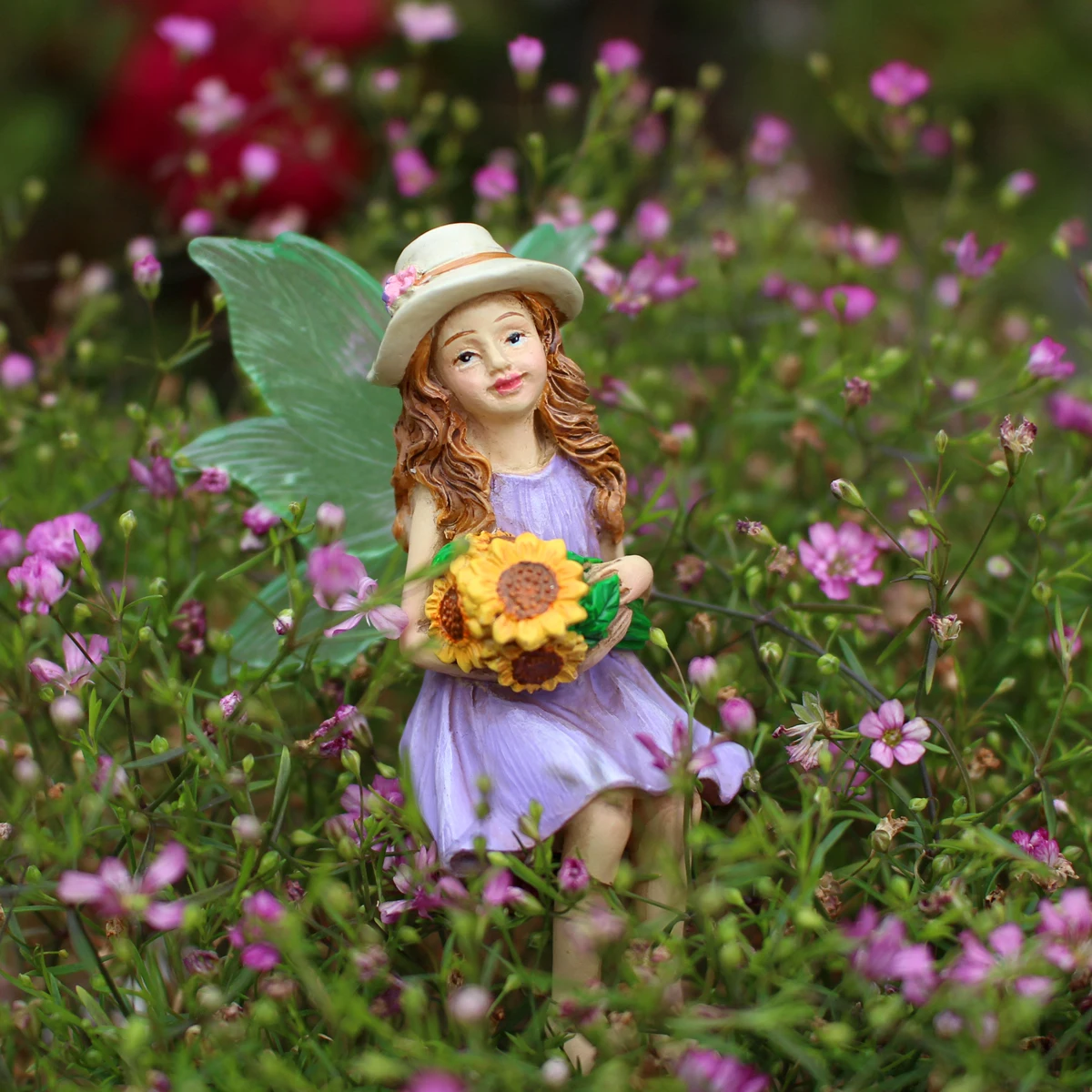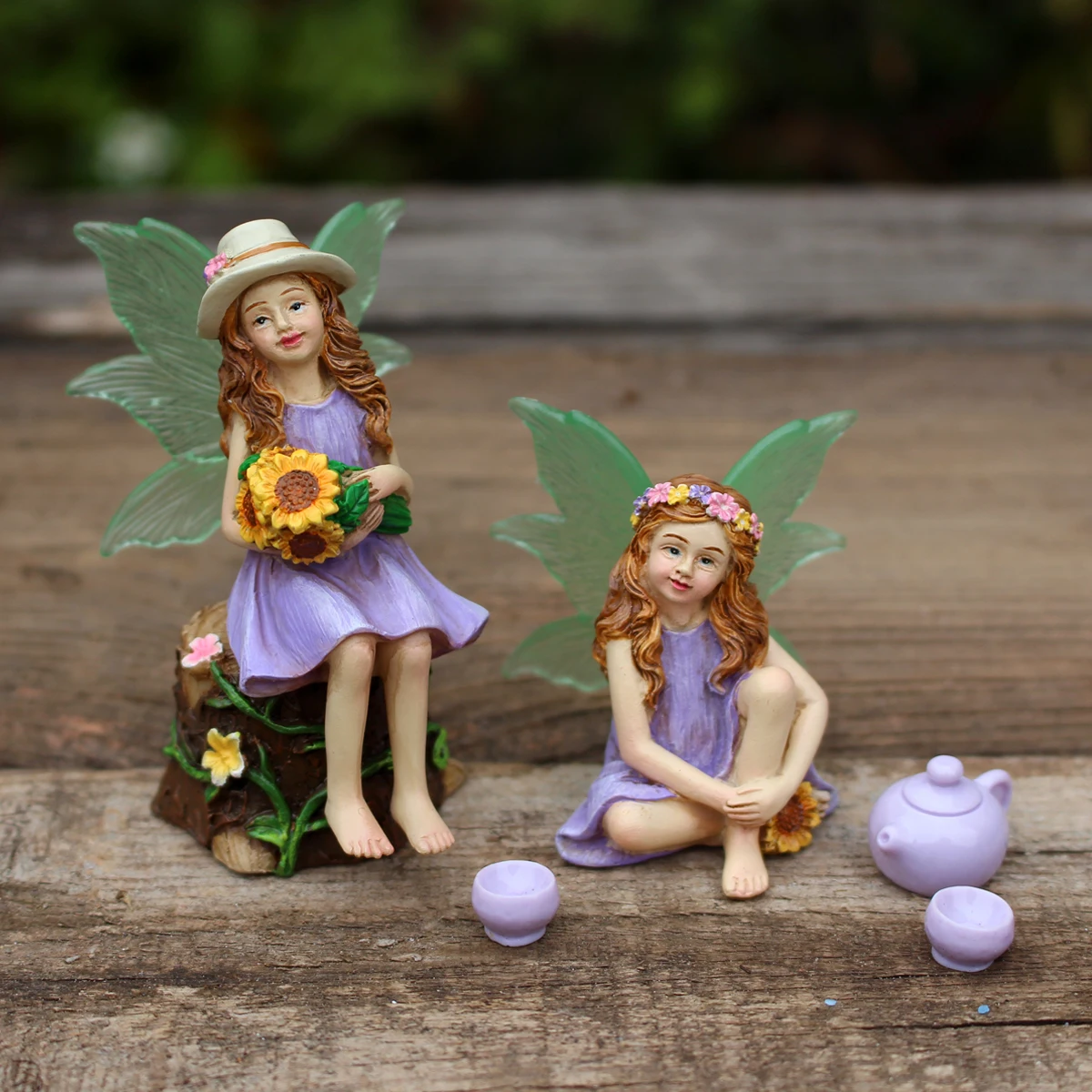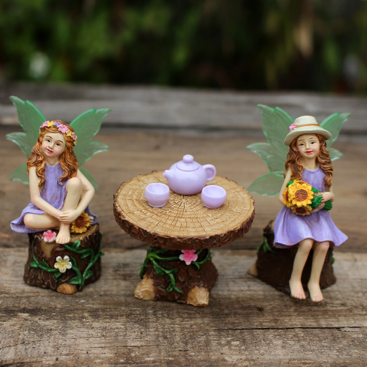 1 Set Summer Tea Party Vacation Flower Fairy, Interesting Scene Simulation Micro Landscape Decoration Statue, Outdoor Fairy Gard