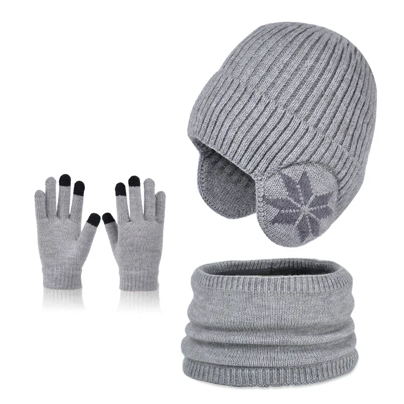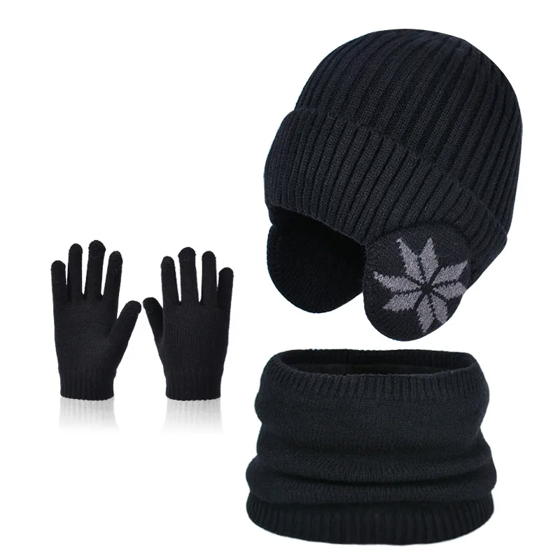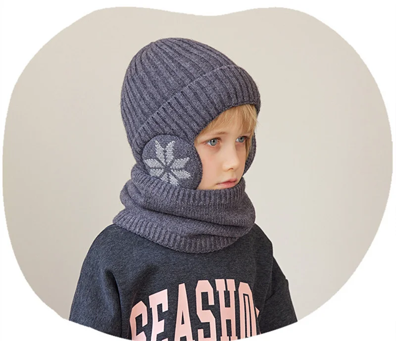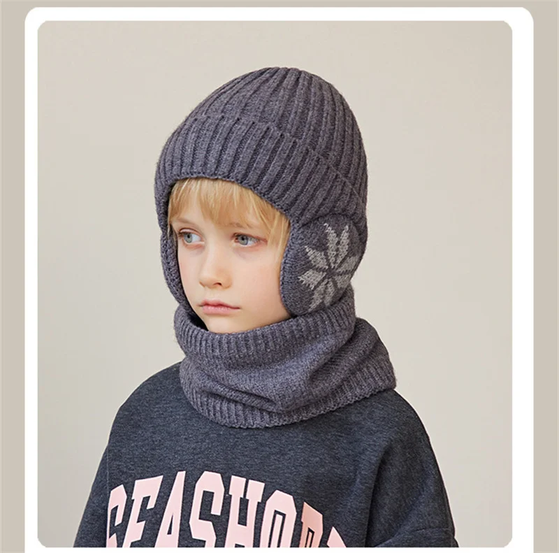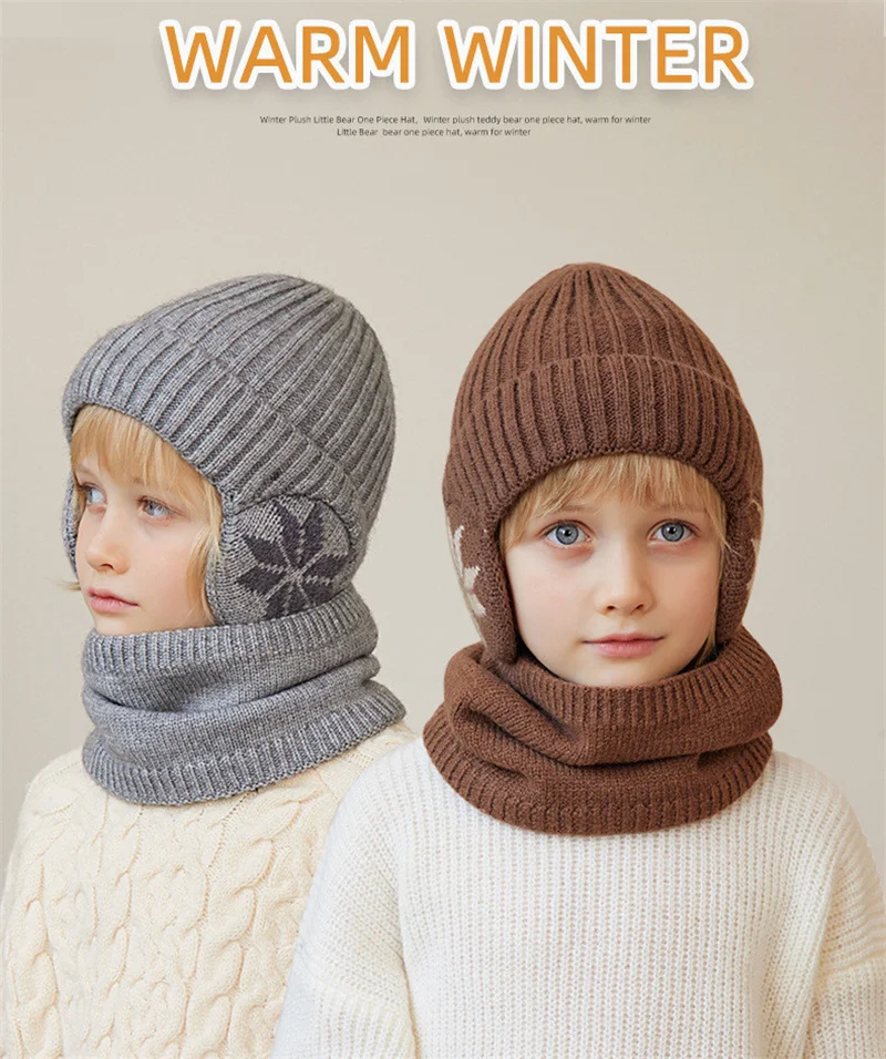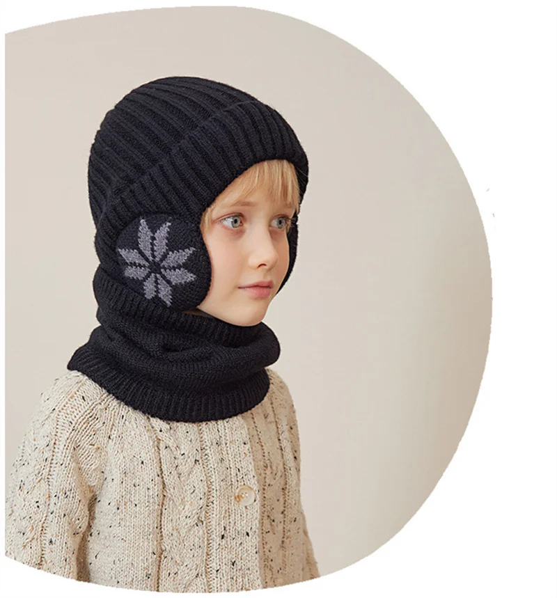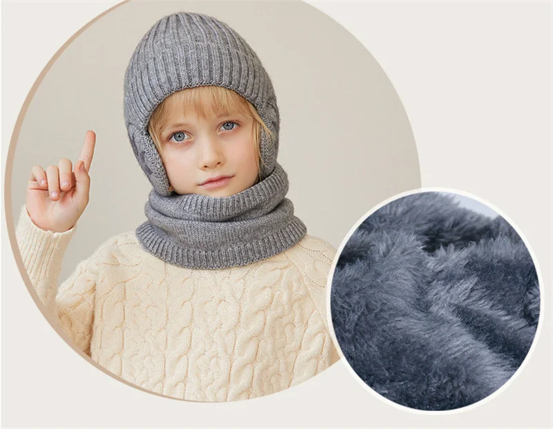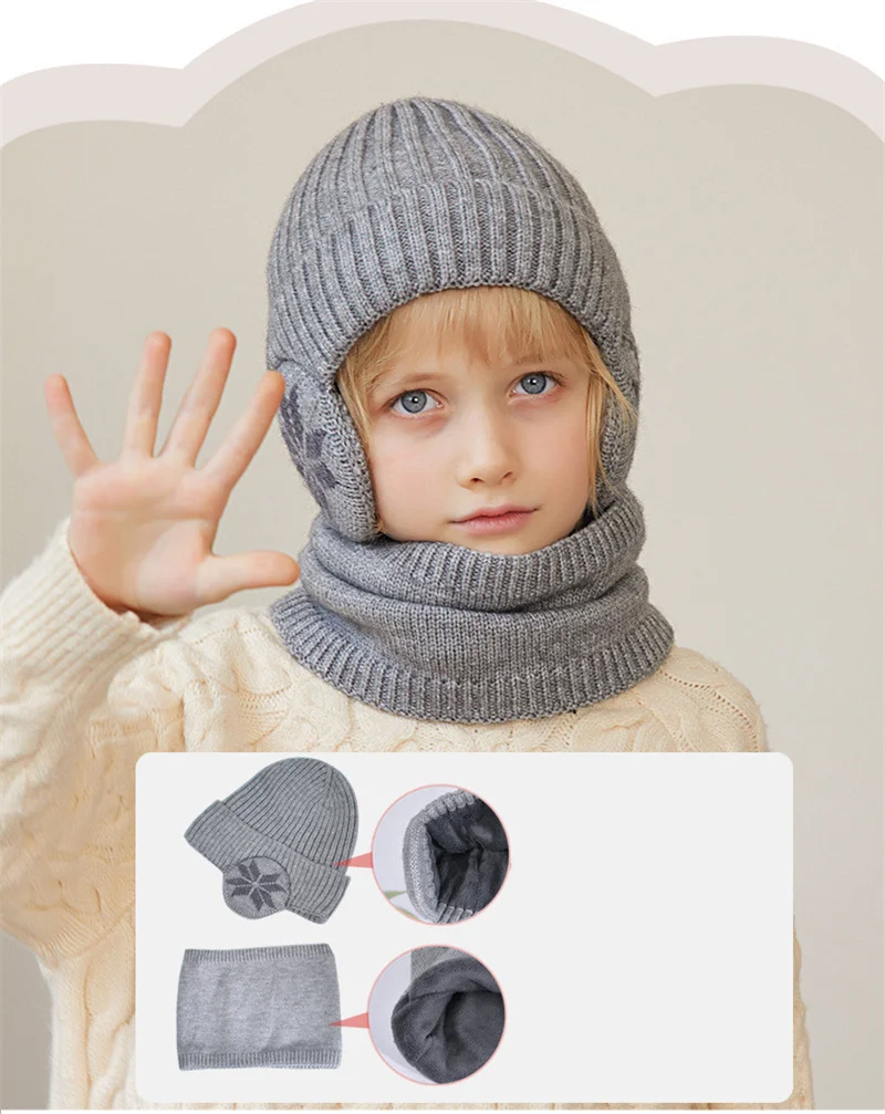 1 Sets 4-10Y Winter Children Baby Boy Hat Scarf Gloves Suit Outdoor Windproof Warm Fleece Knit Kids Ring Muffler Earmuff Hats