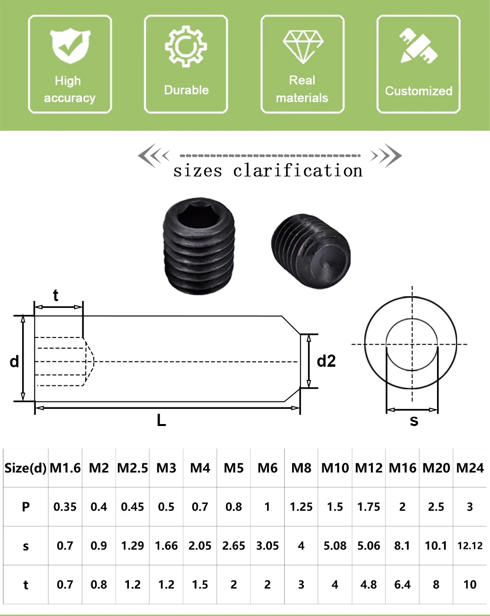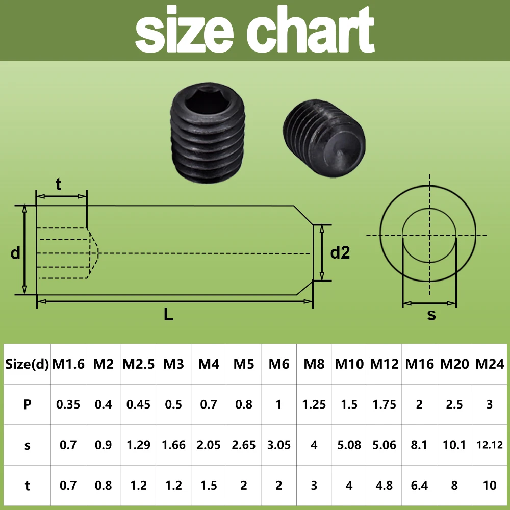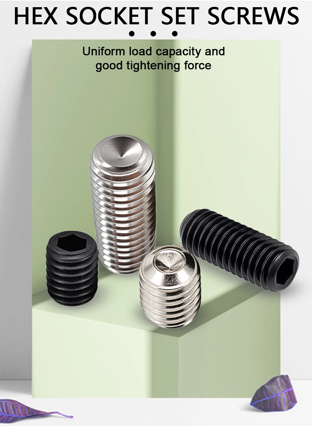 10 – 100pcs DIN916 304 Stainless Steel Grade 12.9 Carbon Steel Hex Socket Set Screws Grub Screw Bolt M1.6 M2 M2.5 M3 M4 M5 M6 M8