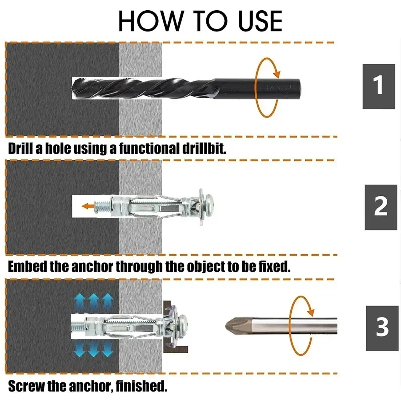 2 reviews for 10-100pcs Heavy Duty Hollow Wall Anchors Set Expansion Nuts Bolt Fixing Screws Fasteners for Drywall Plasterboard Assortment Kit