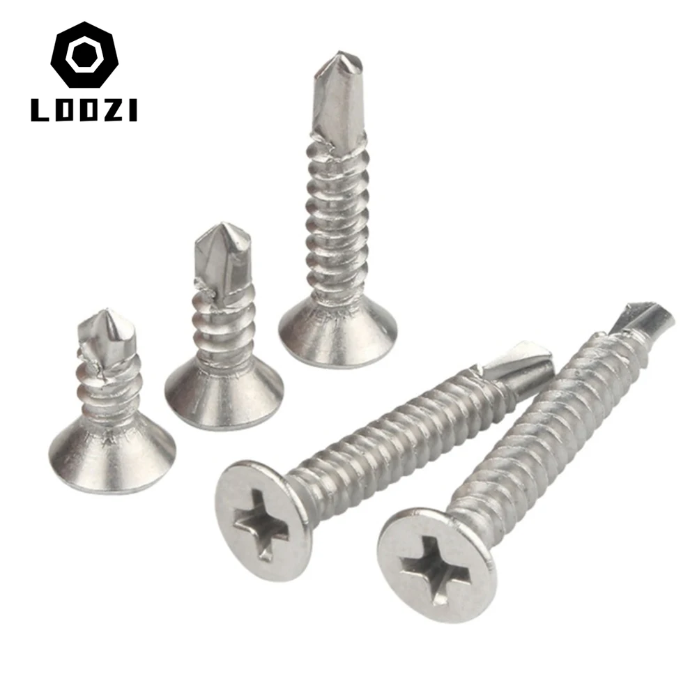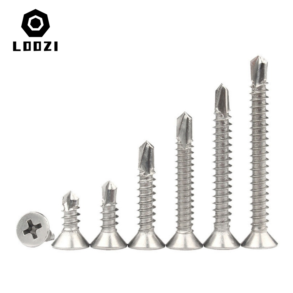10/20pcs M3.5 M4.2 M4.8 M5.5 M6.3 410 Stainless Steel Self Tapping Screw Flat Head Phillips Self Drilling Screw For Sheet Metal