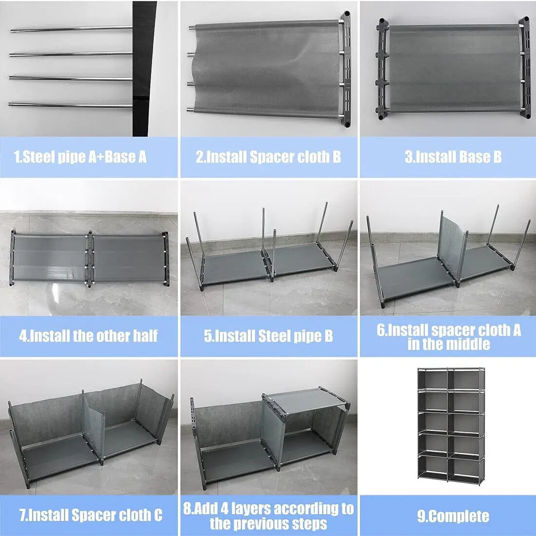 【High Quality Materials】The bookshelf is composed of high-quality metal tube, PP plastic joint and non-woven fabric. The metal pipe not only has strong bearing capacity, but also won't rust. The PP plastic joint is made of high-quality plastic and connected firmly. The non-woven fabric is waterproof, it has strong load-bearing capacity and has no irritating odor that damages the human body, and it is environmentally friendly and healthy