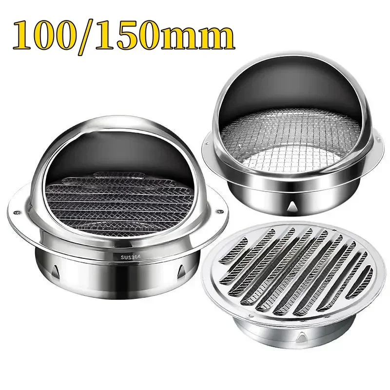 100/150mm Stainless Steel Exhaust Hood Wall Exhaust Cover Exhaust Port Bathroom Extractor Outlet Grille Louver Decoration
