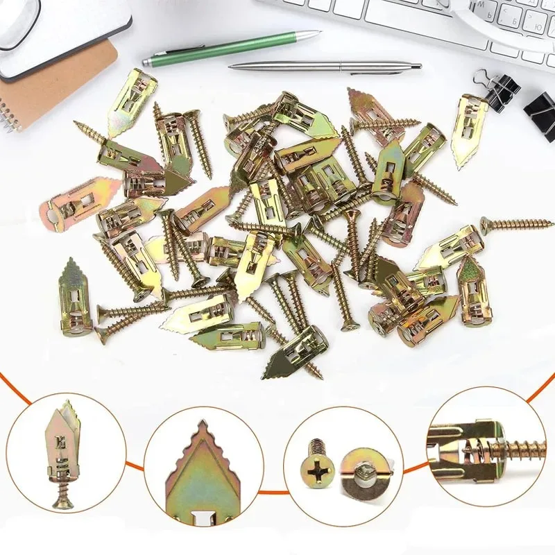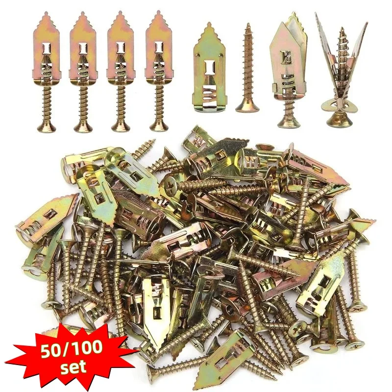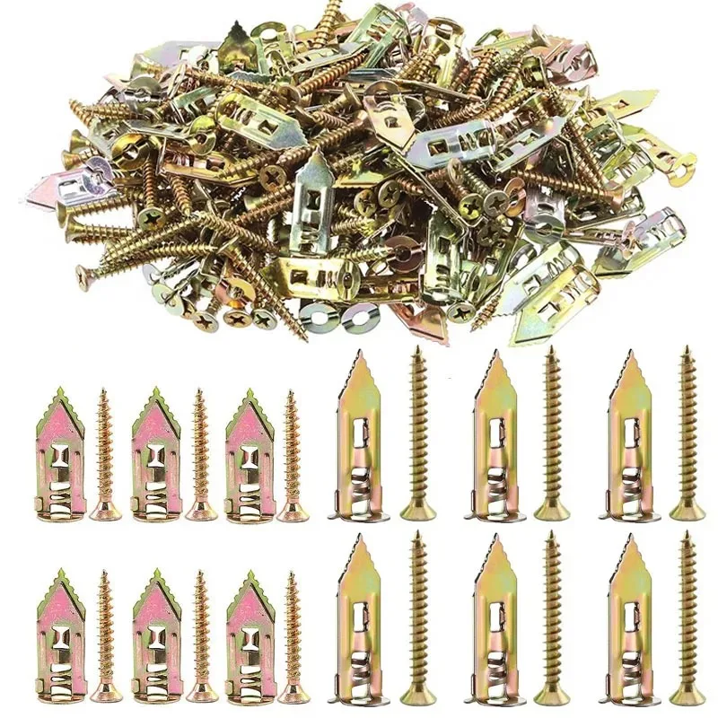 100/50set Self Tapping Screws Self Drilling Anchors Screws Drywall Anchors Easy Application for Gypsum Plasterboard Dowel 12X30mm