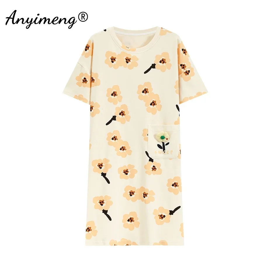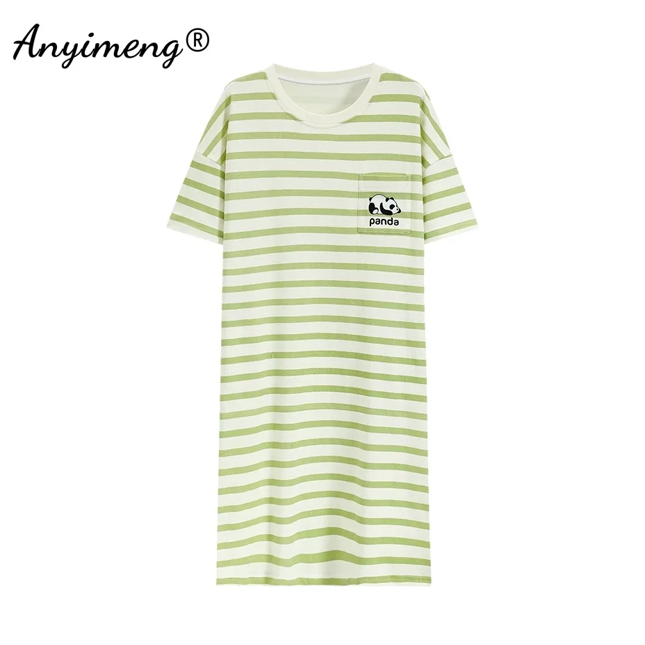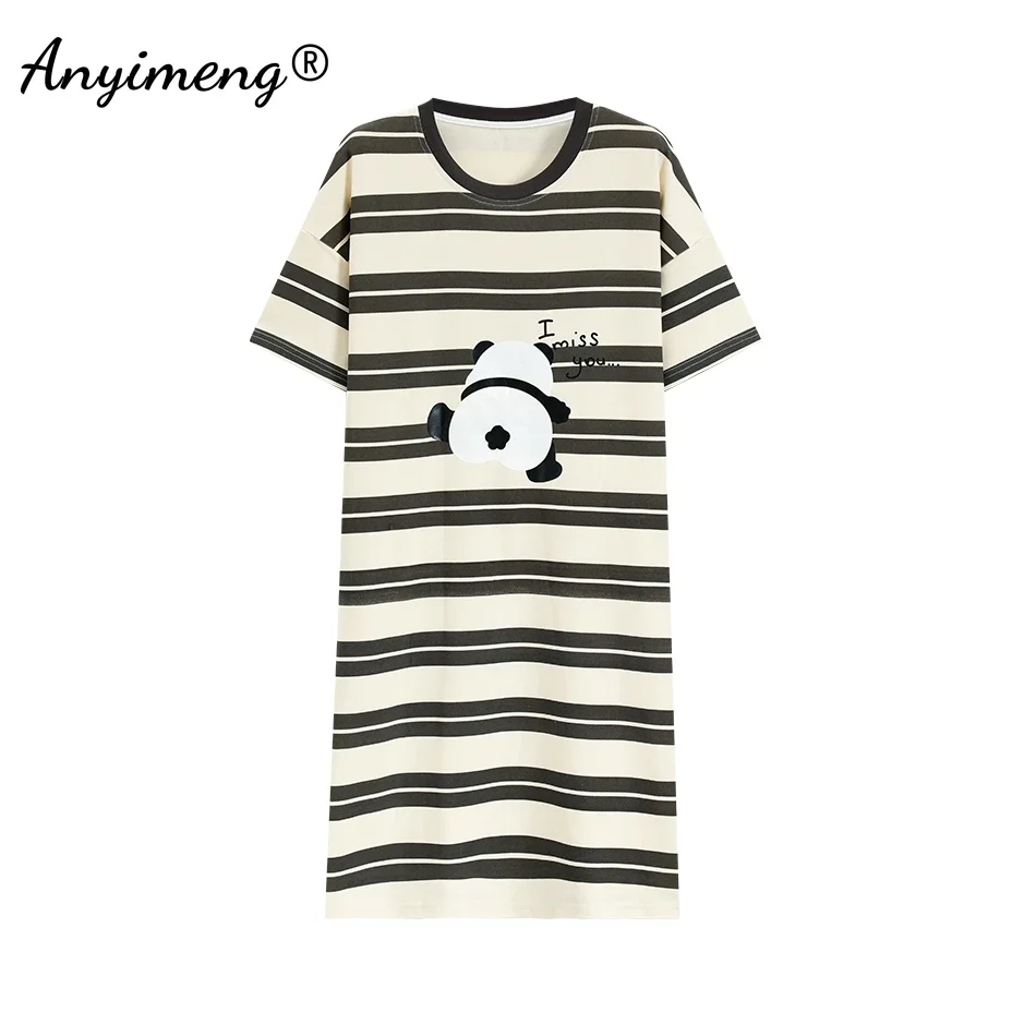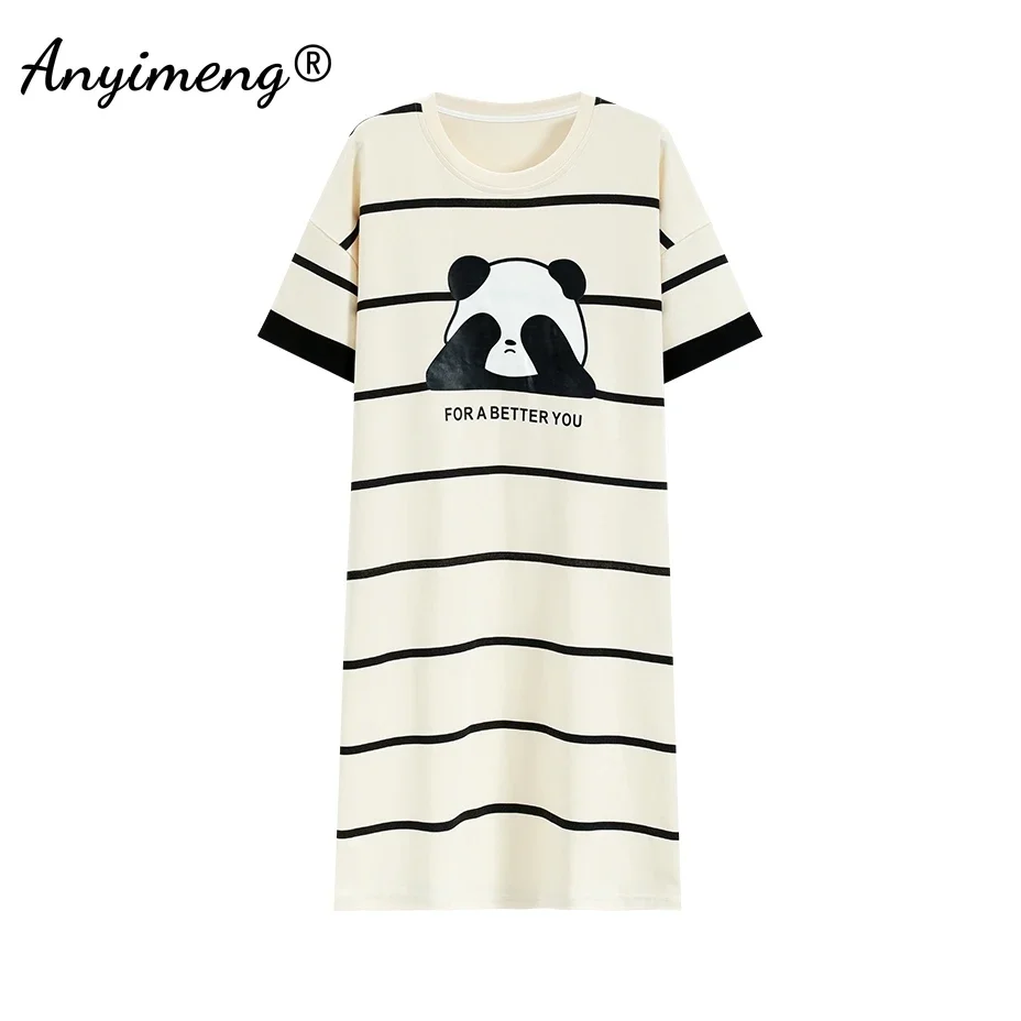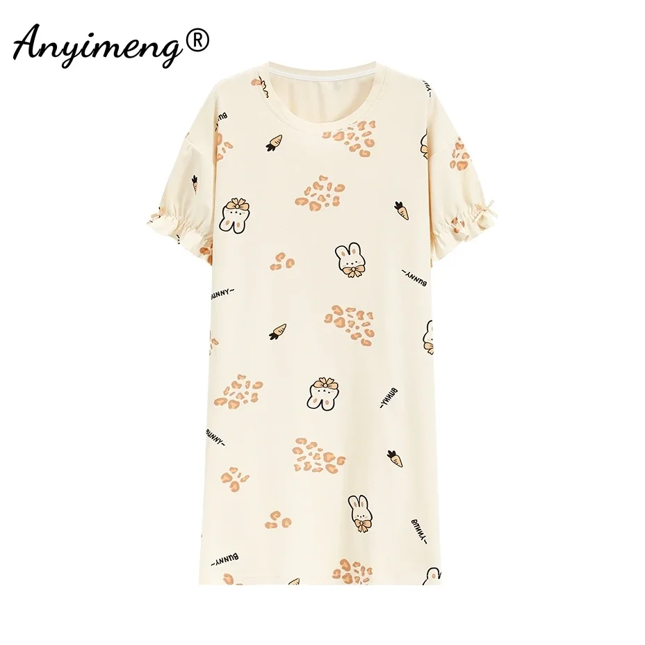 100% Cotton M-4XL Plus Size Summer Women Nightgowns Leisure Short Sleeves Sleepshirts Casual Nightdress Anti-bacterial Dresses