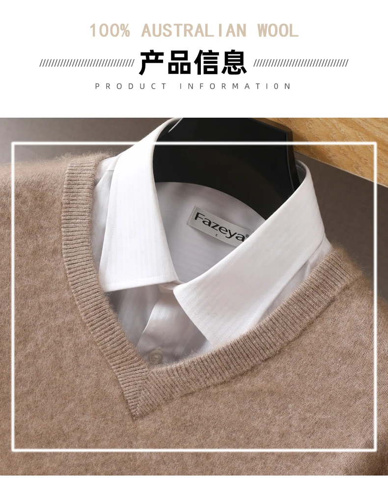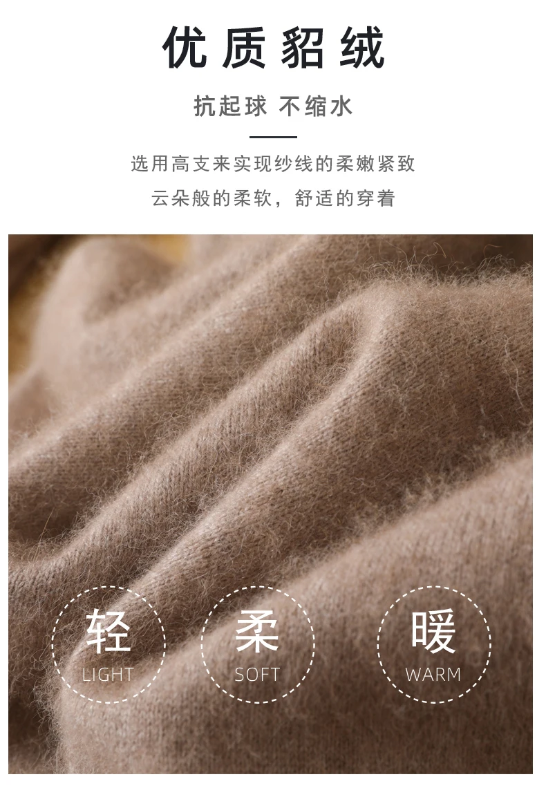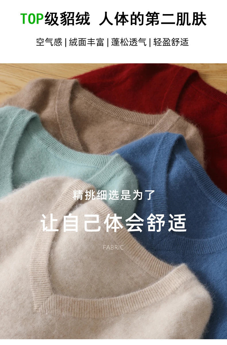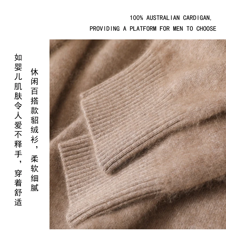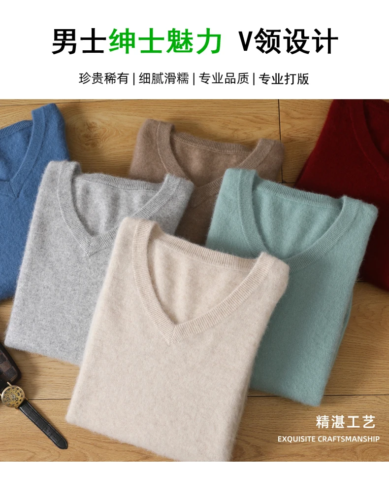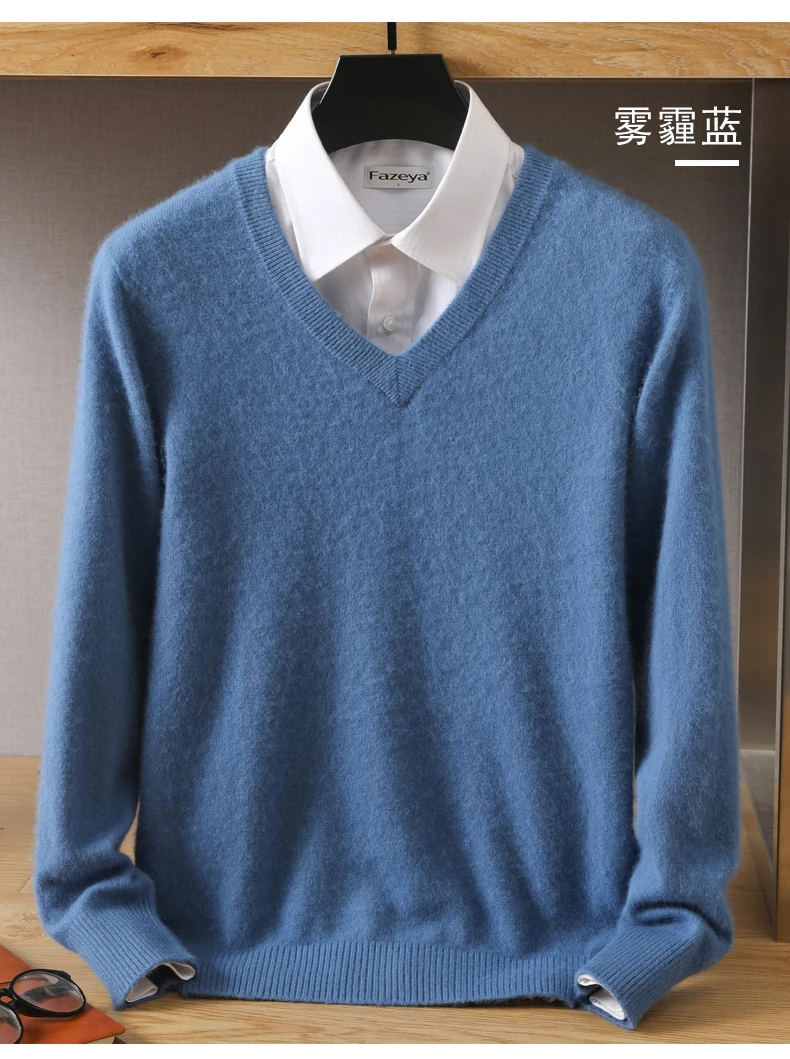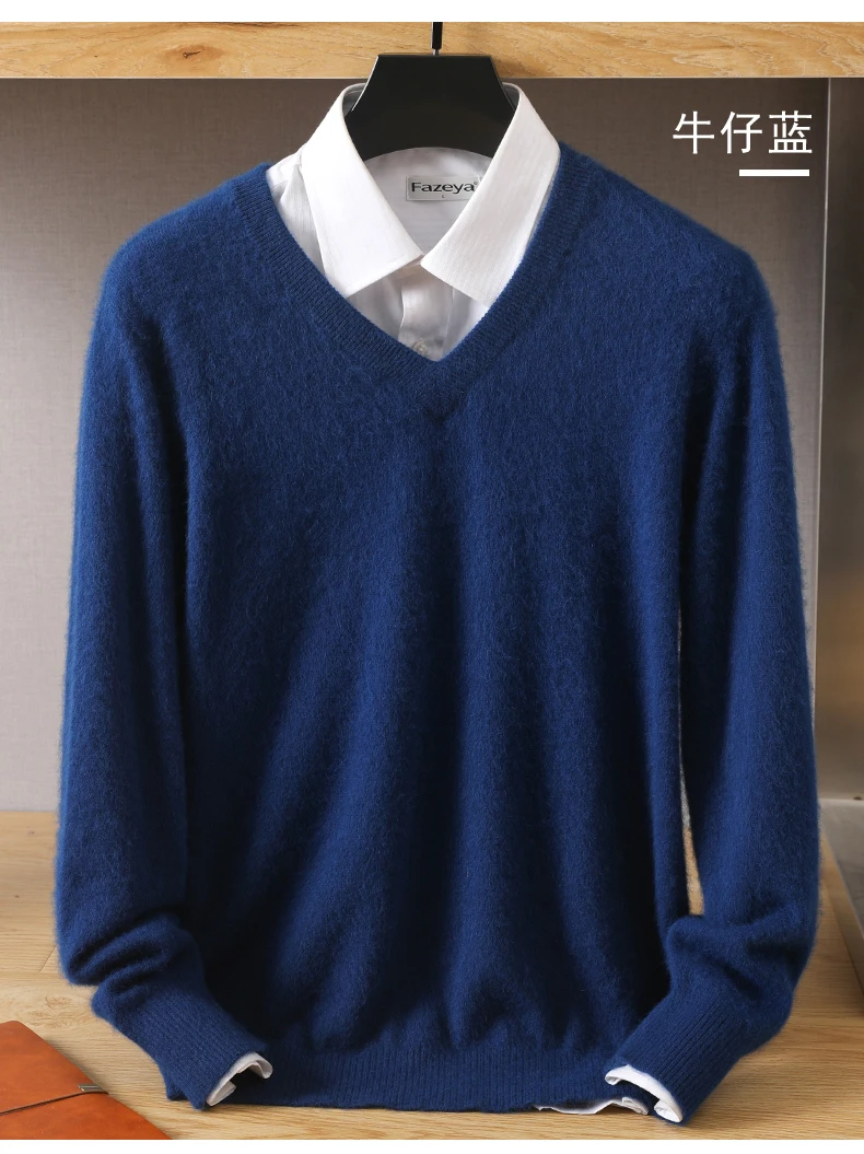 100% Pure Mink Cashmere Sweater Men’s V-Neck Pullovers Knit Large Size Mink Sweater Winter New Long Sleeve High-End Jumpers Tops