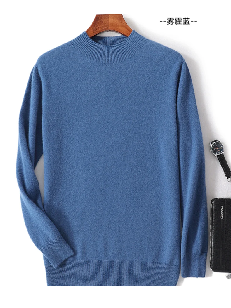 100% Pure Wool Cashmere Sweater Men’s Half Turtleneck Pullover Casual Fashion Thickening Top Knitting Sweater