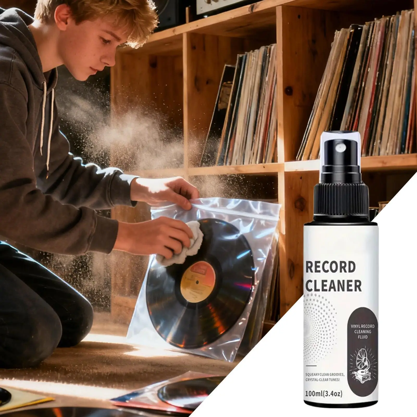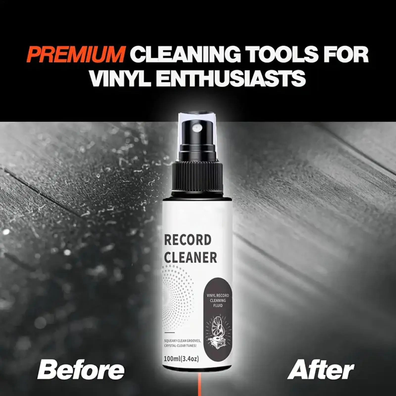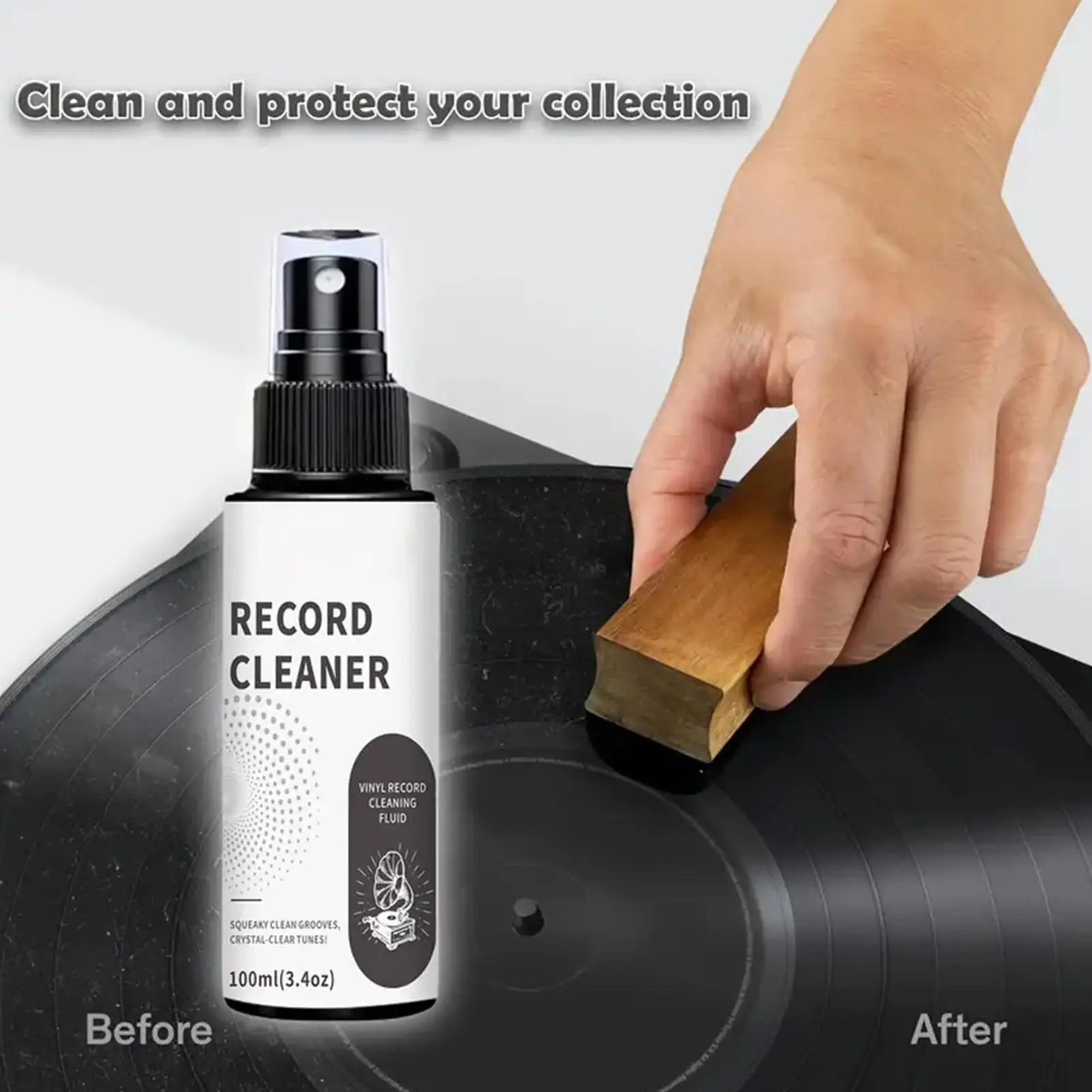 3.Restore Glossy Appearance: With its gentle formula, the record cleaner removes oil, fingerprints, and grease while safeguarding delicate finishes. It restores the glossy appearance of records, ensuring they remain in excellent condition for uninterrupted enjoyment by dedicated record collectors and casual listeners alike