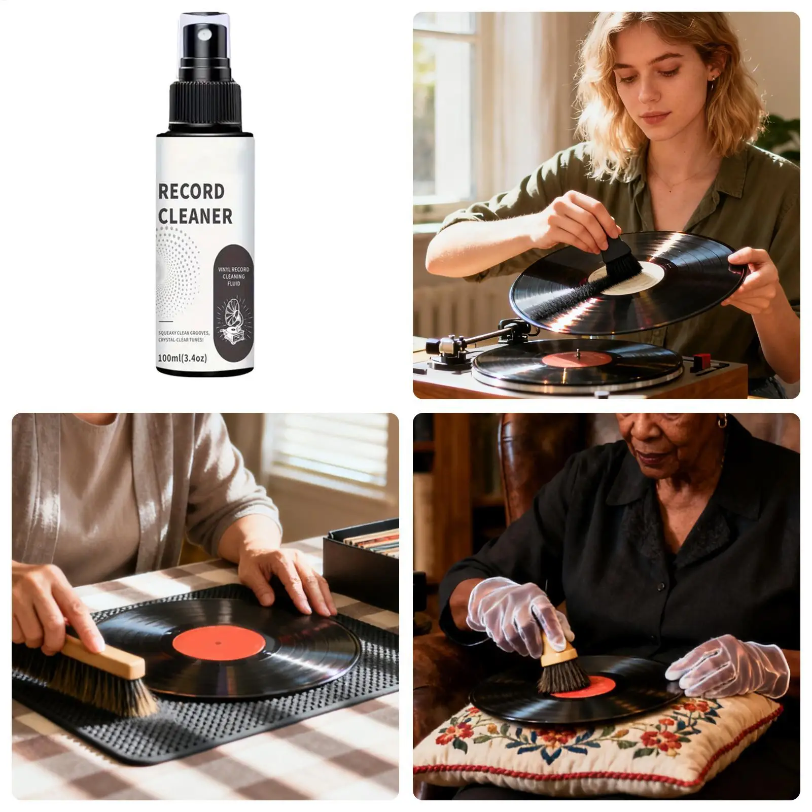 1.Remove Dust: The record cleaning kit targets stubborn grime on phonograph records, breaking it down rapidly to restore clarity, which enhances sound quality and ensures uninterrupted enjoyment of your favorite albums
