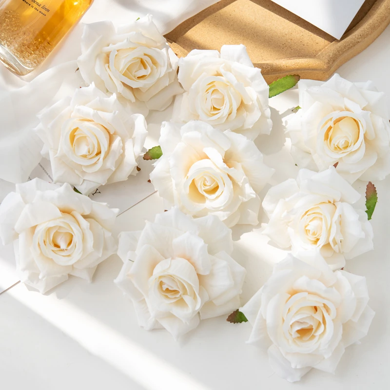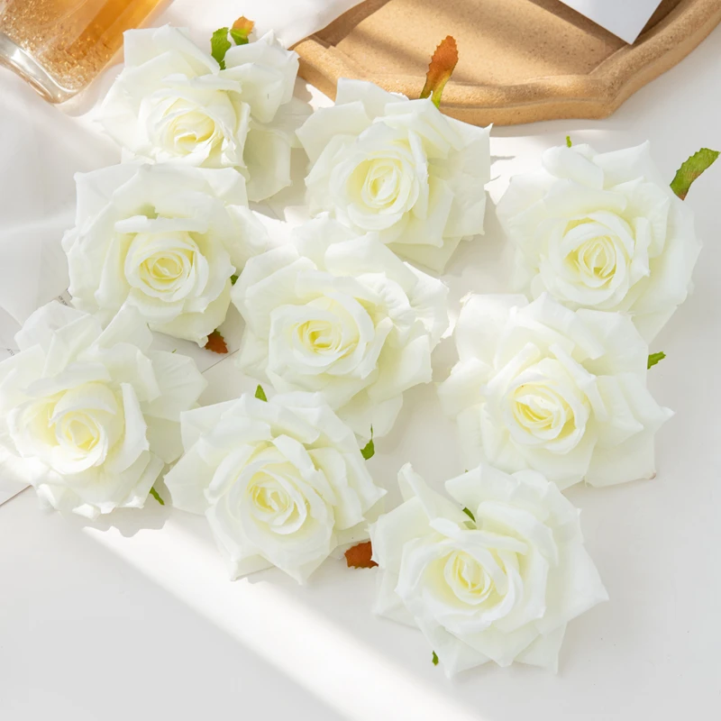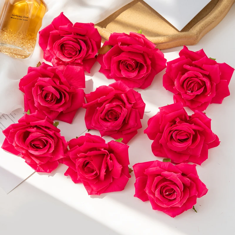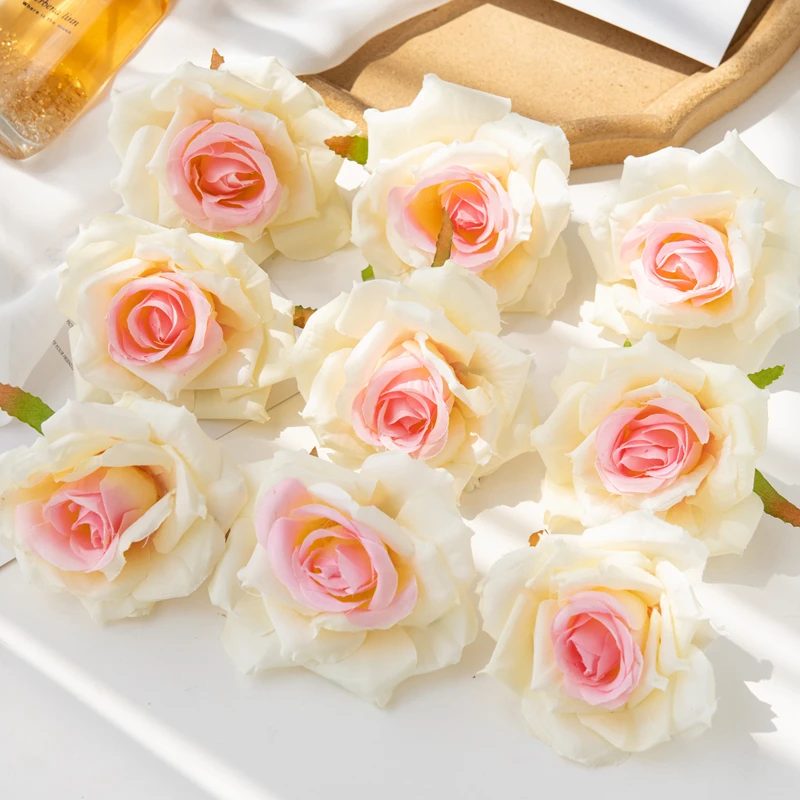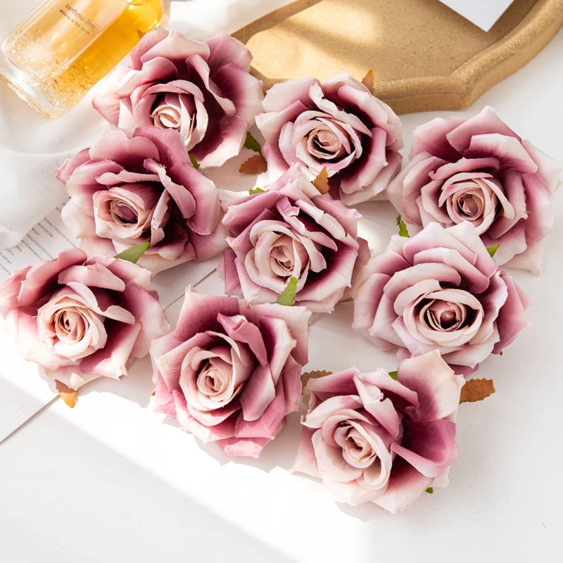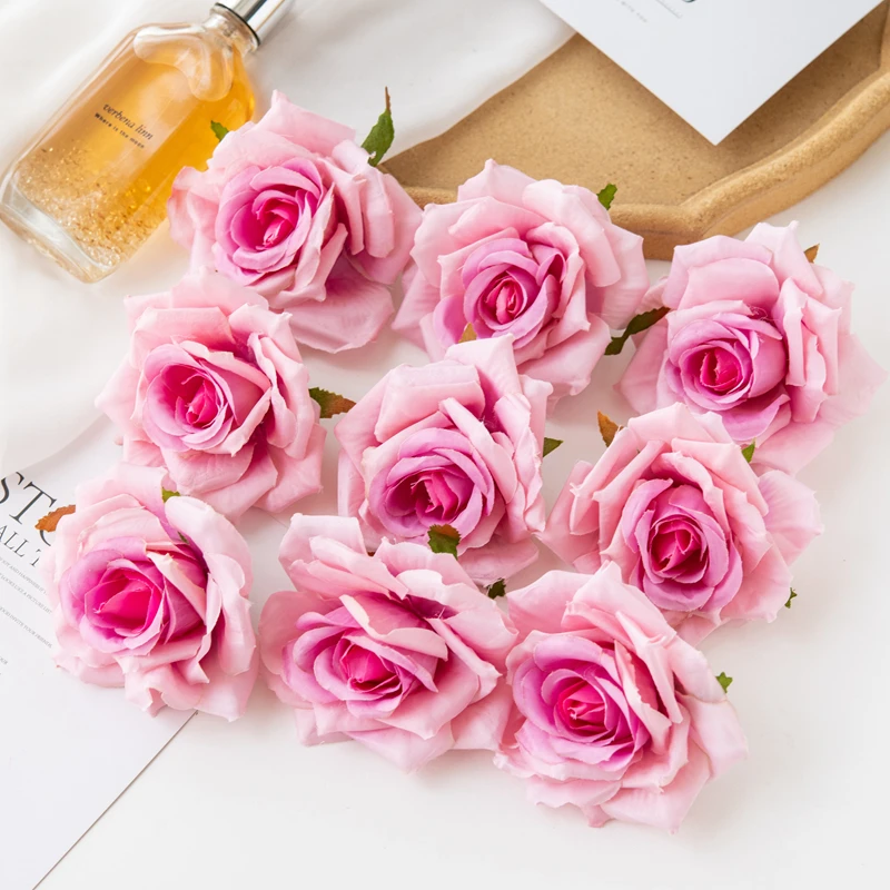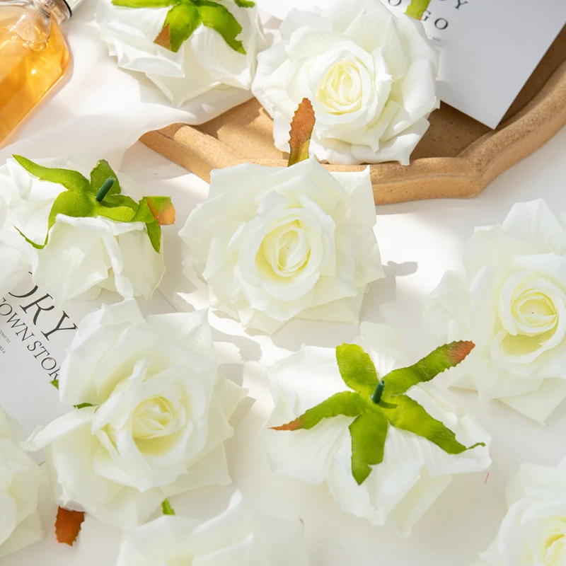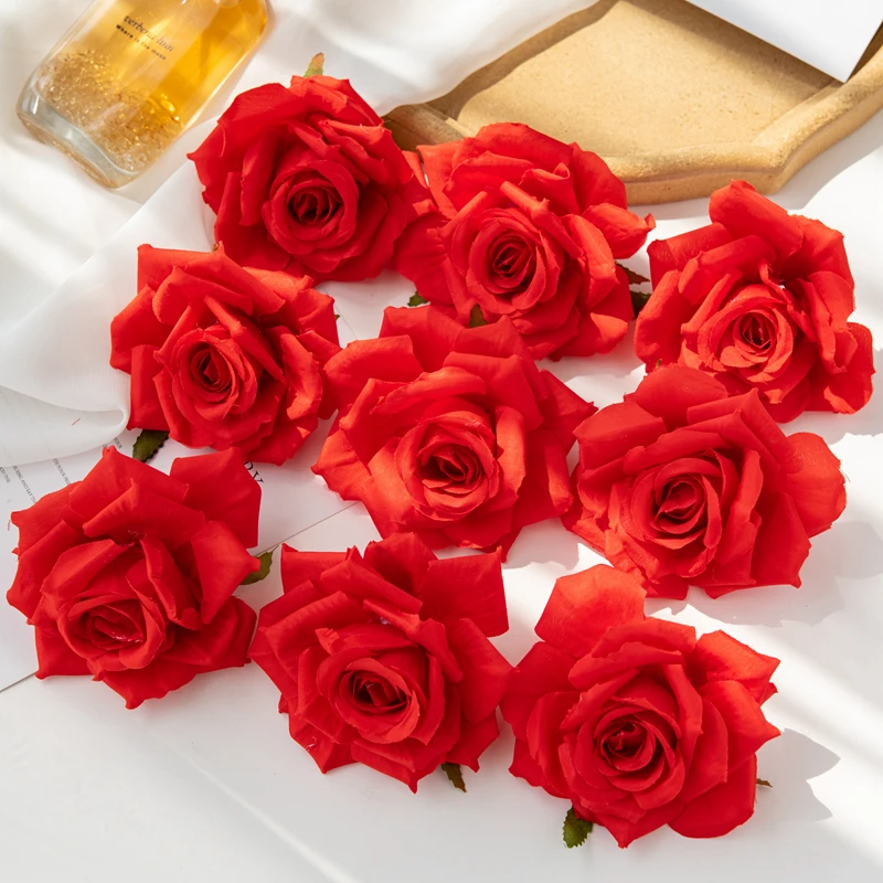 100PC 10CM Wholesale Artificial Flowers for Scrapbook Christmas Home Decor Wedding Garden Rose Arch Fake Silk Head Candy Box