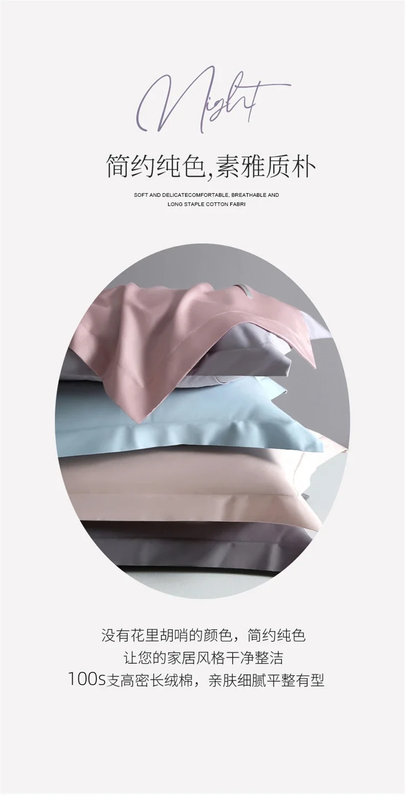 100s Long Staple Cotton Pillowcase High Quality Sleeping Solid Color Pillow Case Washable Envelope Style Pillow Protector Cover