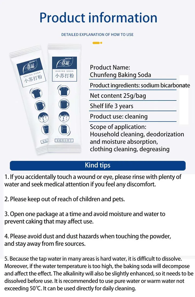 5 reviews for 10bags Sodium Bicarbonate Baking Soda Multi-functional Decontamination Cleaning Powder Decontamination White Powder Soda Powder