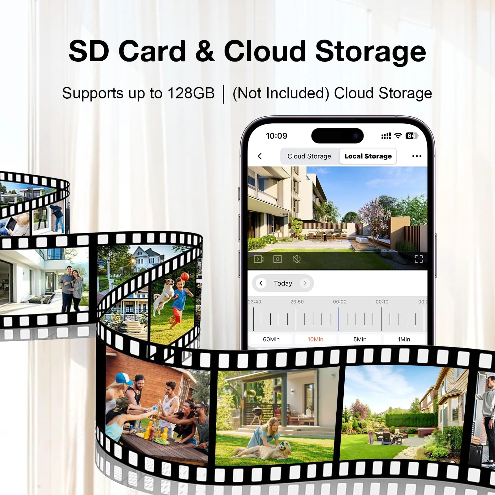 The camera supports up to 128GB TF card local backup and also provides cloud storage service(Need to pay extra cost)