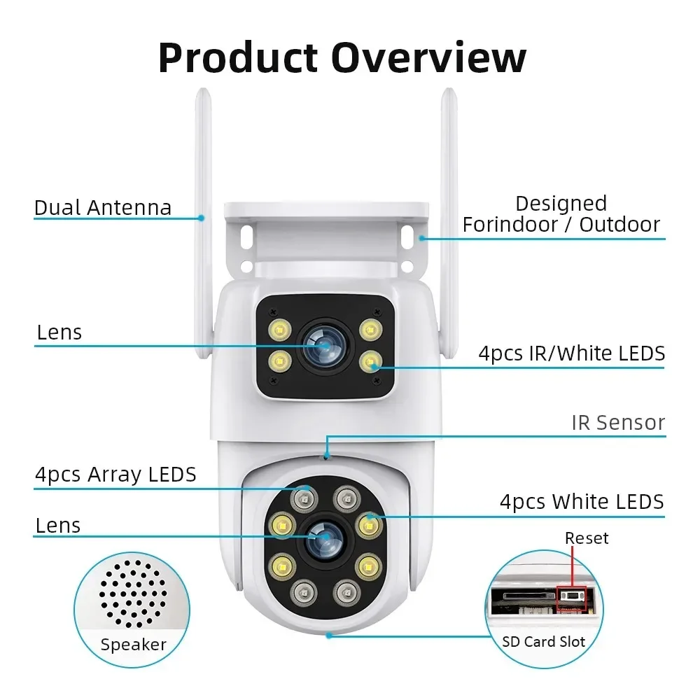 10MP Dual Lens Tuya Wifi Camera PTZ Outdoor 4K Wireless Dual Screen Security Camera Auto