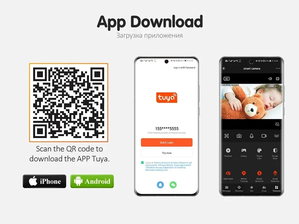 Camera is built with microphone and speaker. So you can talk to your kids via your Smartphone remotely whenever you want![]()