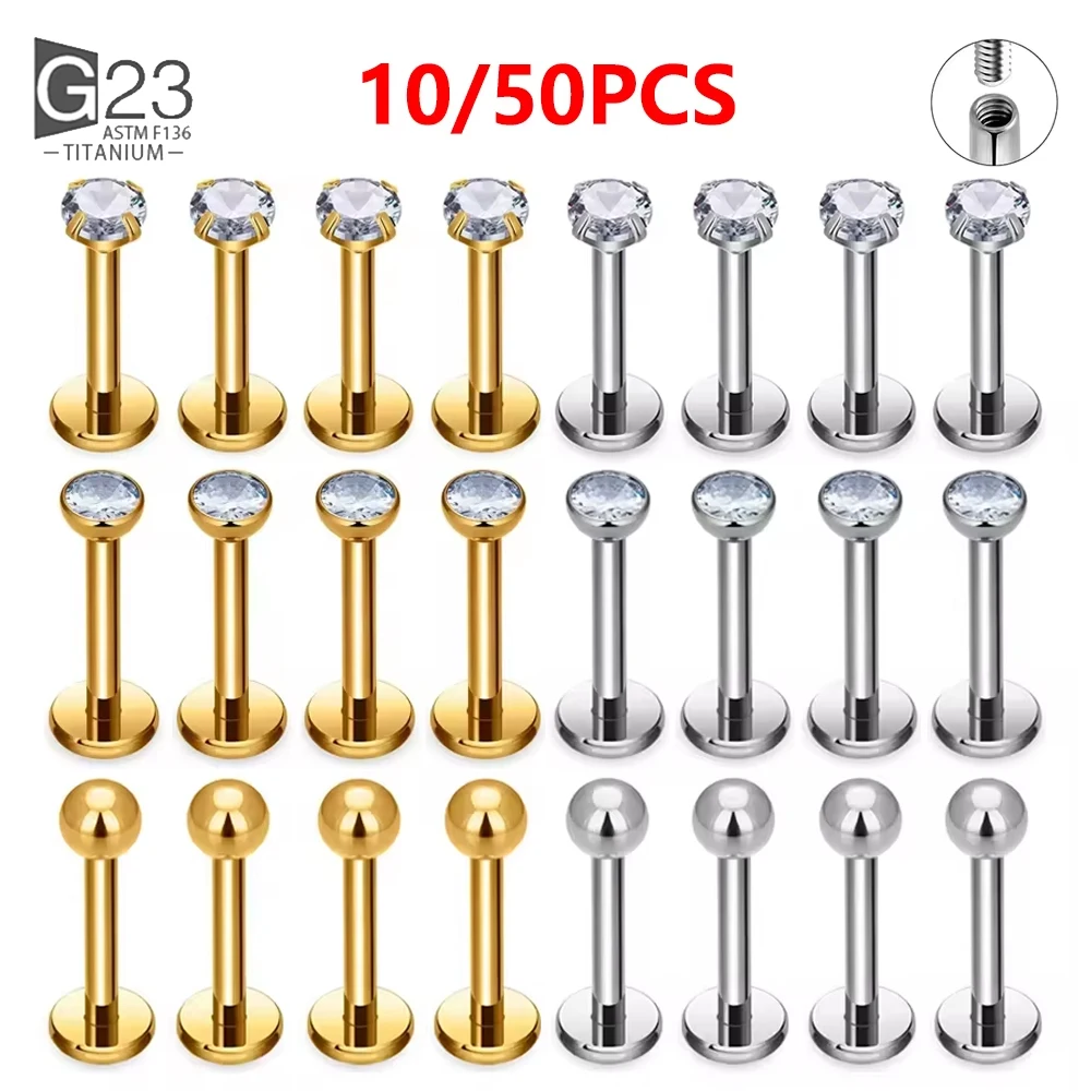 10Pc/50Pc G23 Ttianium Labret Ear Lip Stud Jewelry Square CZ Stone Cartilage Tragus Earring Tongue studs Threaded Body Jewelry
