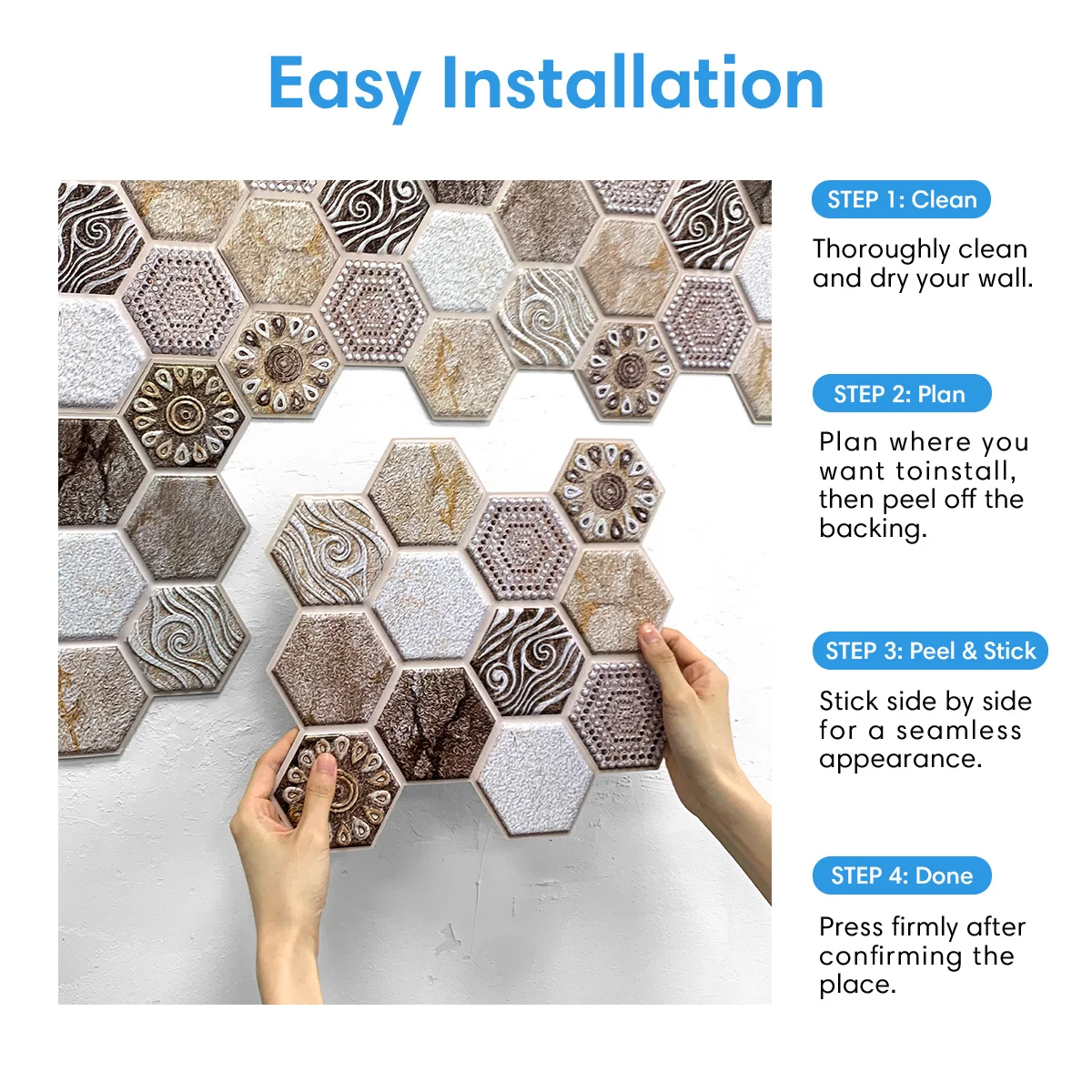 【Designed for Longevity】: Our wall panels are heat-resistant, water-resistant, and mold-resistant, so they adapt well to various environments like kitchens and bathrooms. The upgrade adhesive backing ensures a strong hold, keeping your panels stay on wall as long as you wish.